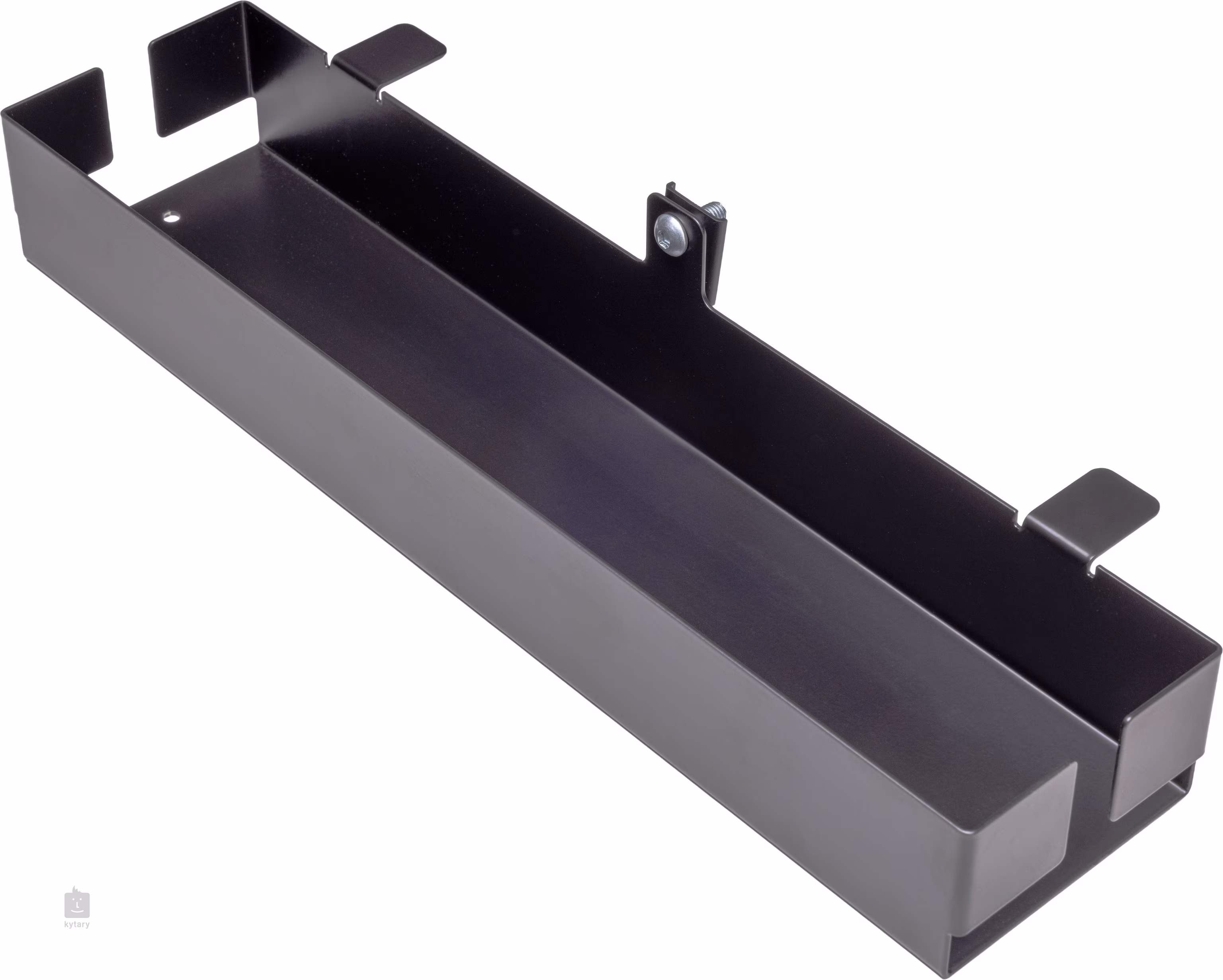 A doboz az állvány alsó keresztrúdjára, a padló közelében szerelhető fel, így nem feltűnő, ugyanakkor könnyen hozzáférhető. A szerkezet erős acéllemezből készült, ami biztosítja a nagy ellenállóságot a mindennapi használat során. Az oldalsó nyílások kényelmes kábelvezetést és áttekinthető elrendezést tesznek lehetővé, anélkül, hogy a kábelek összegabalyodnának. Az szervező méretei 437 × 100 × 60 mm, súlya 0,5 kg, fekete strukturált felülettel rendelkezik, amely illeszkedik a professzionális színpadi állványokhoz és a technikai berendezésekhez.