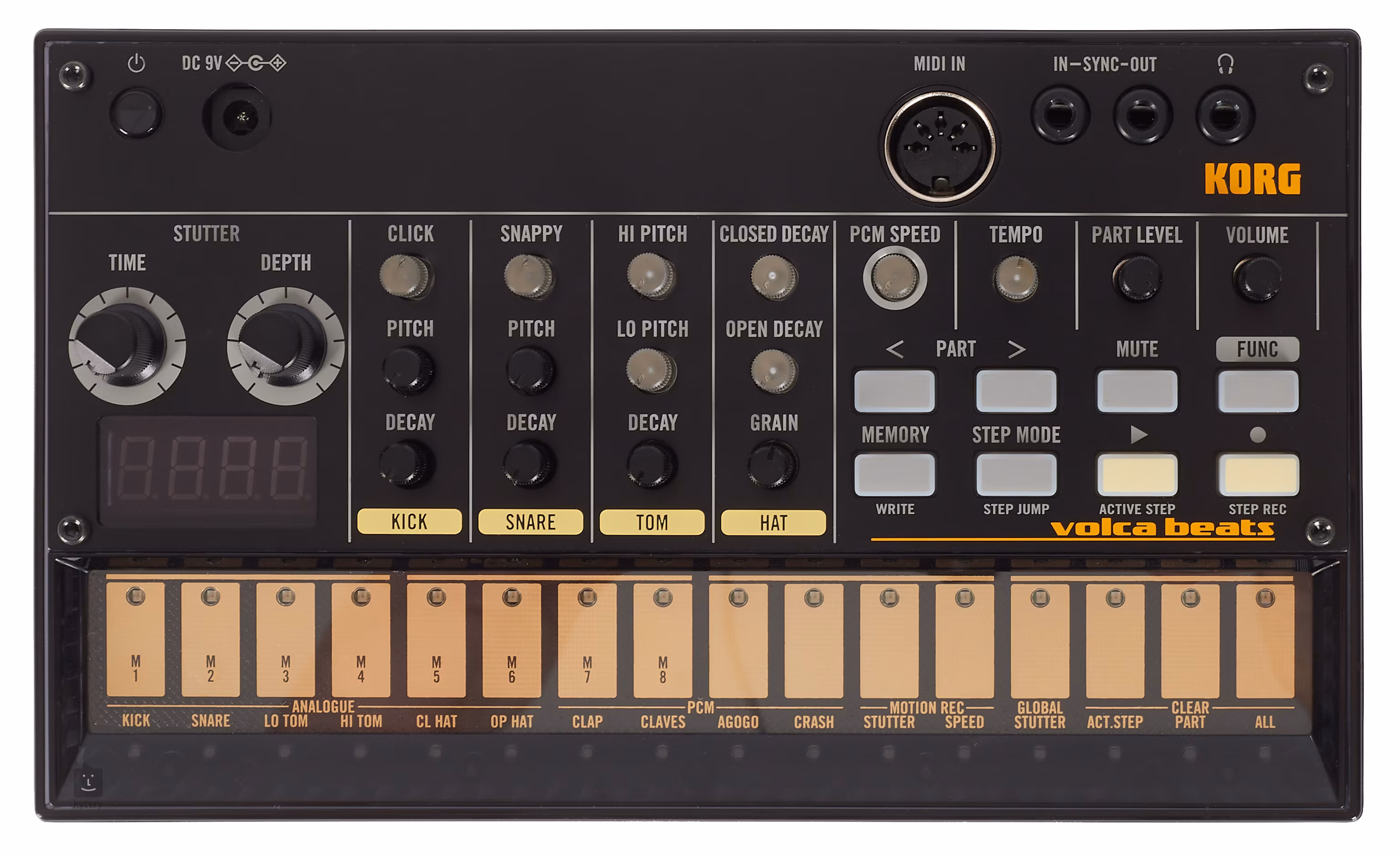 A Volca Beats modell hat olyan hangzást kínál, amelyekben az analóg minőség a leginkább átüt: Kick, Snare, Hi Tom, Lo Tom, Closed Hi Hat és Open Hi Hat. A Korg ezeknek a tánczenéhez nélkülözhetetlen standard hangoknak az aprólékos átdolgozásával olyan inspiráló új hangzásokat ért el, amelyeket csak analógon lehet előállítani.