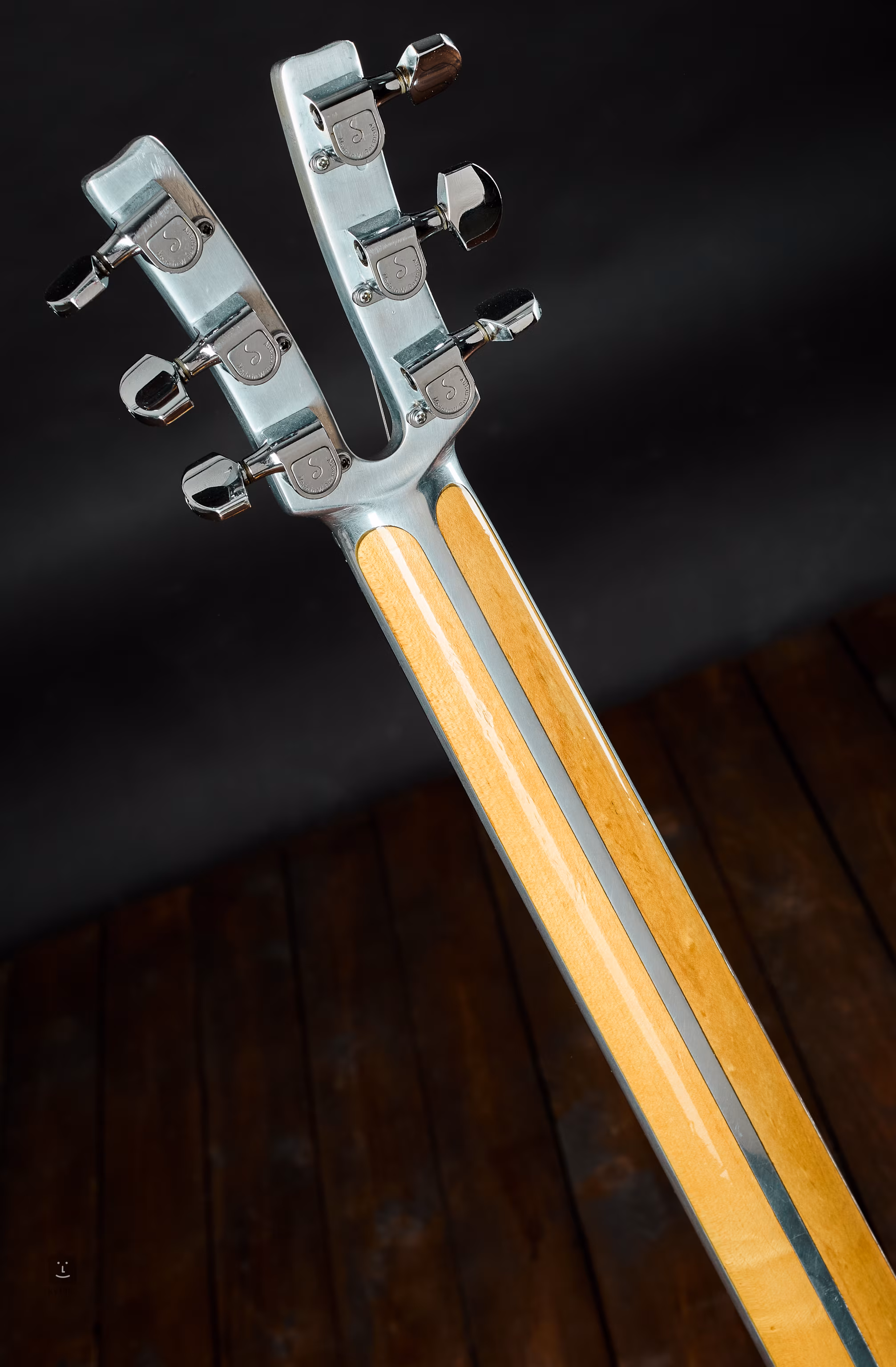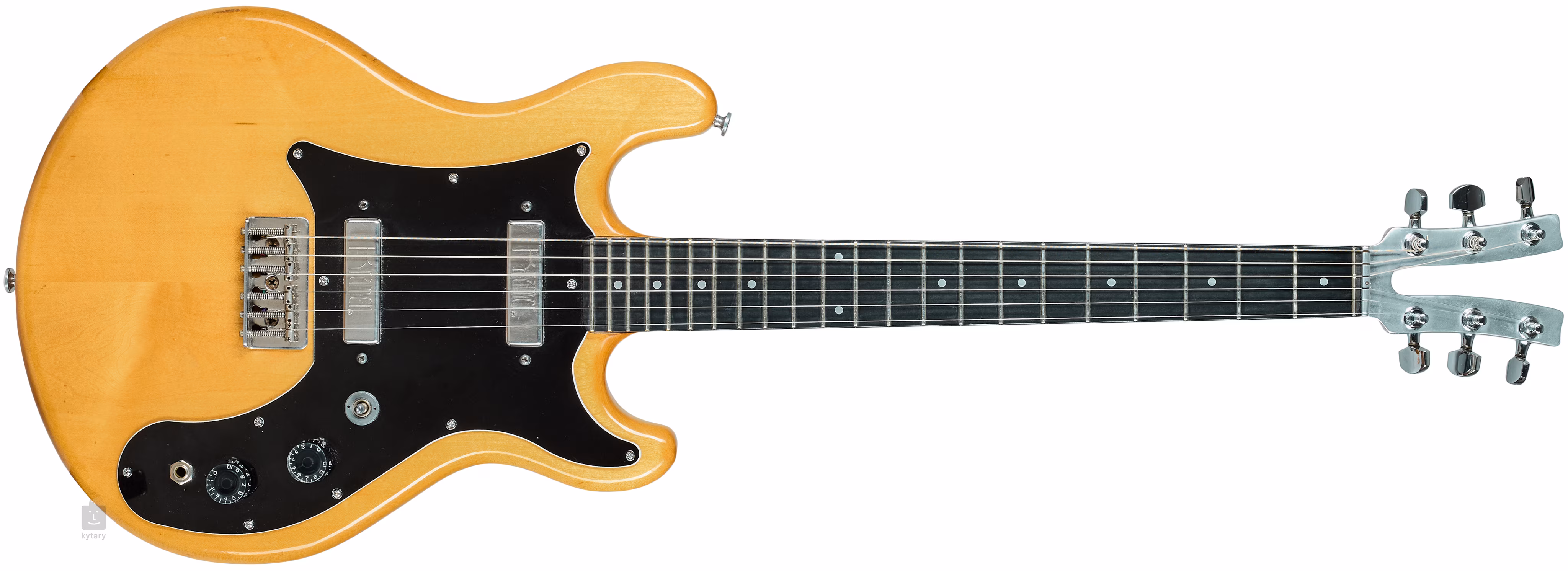 A nyak alumínium és juhar kombinációja. A fogólap ében, a test juharból készült.