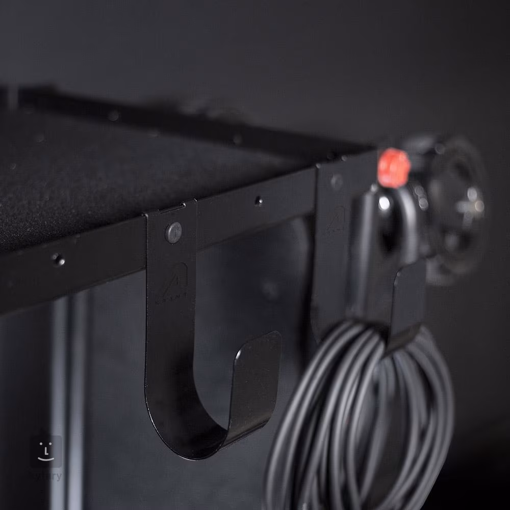 Két három hüvelykes, tartós acélból készült kampó, amely alkalmas kábelek, fejhallgatók, mikrofonállványok és egyéb apró kiegészítők tárolására. A kampókat szegecsekkel lehet rögzíteni a KRANE munkalapjaihoz.