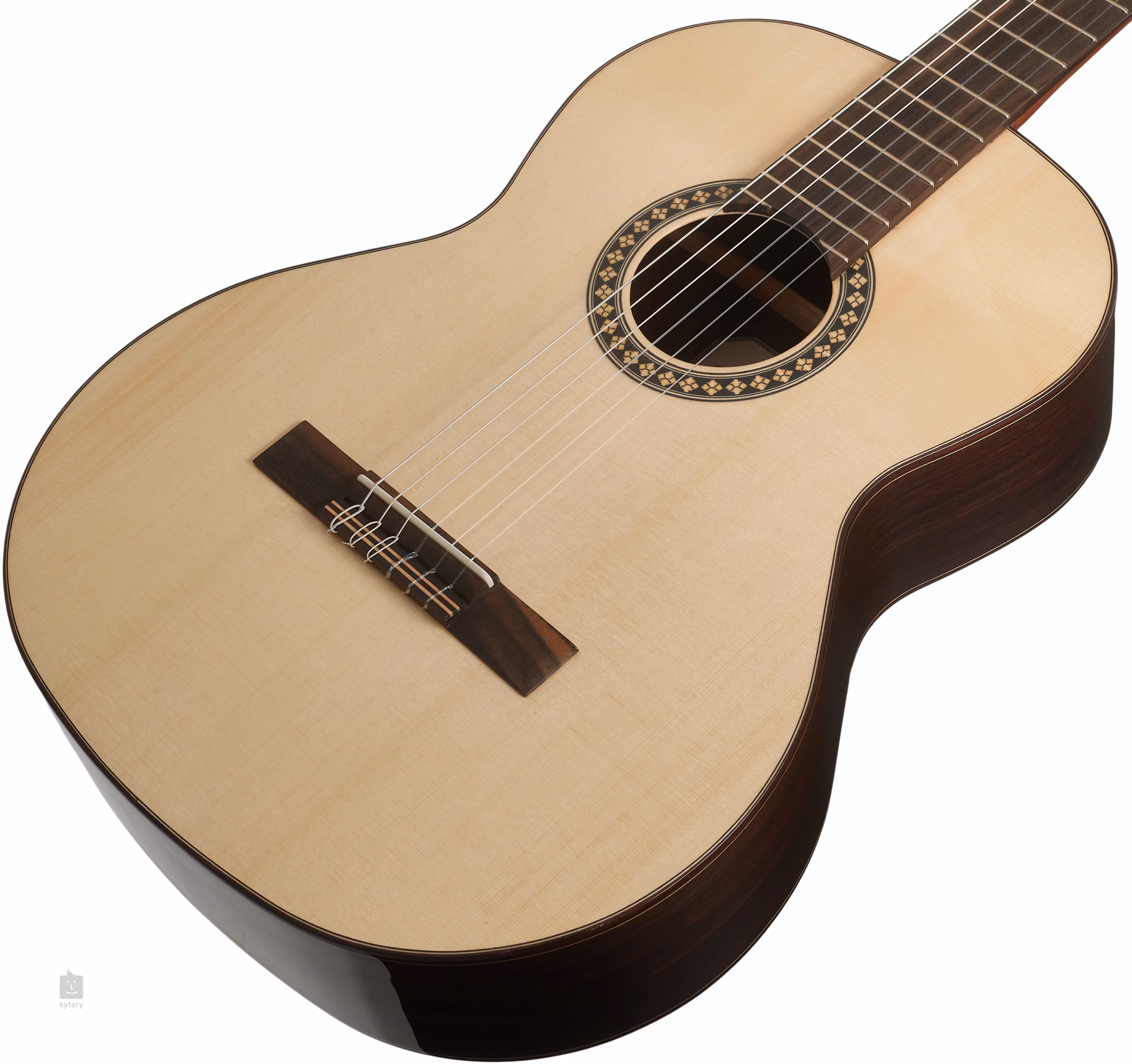 A húrok a csontból készült nulladik és nyeregcsúszdán keresztül vannak rögzítve a sárgaréz hangolókulcsokhoz és az ébenfa húrtartóhoz. A gyönyörű kivitelezést fa szegély, paliszander betét és díszítő rozetta emeli ki.