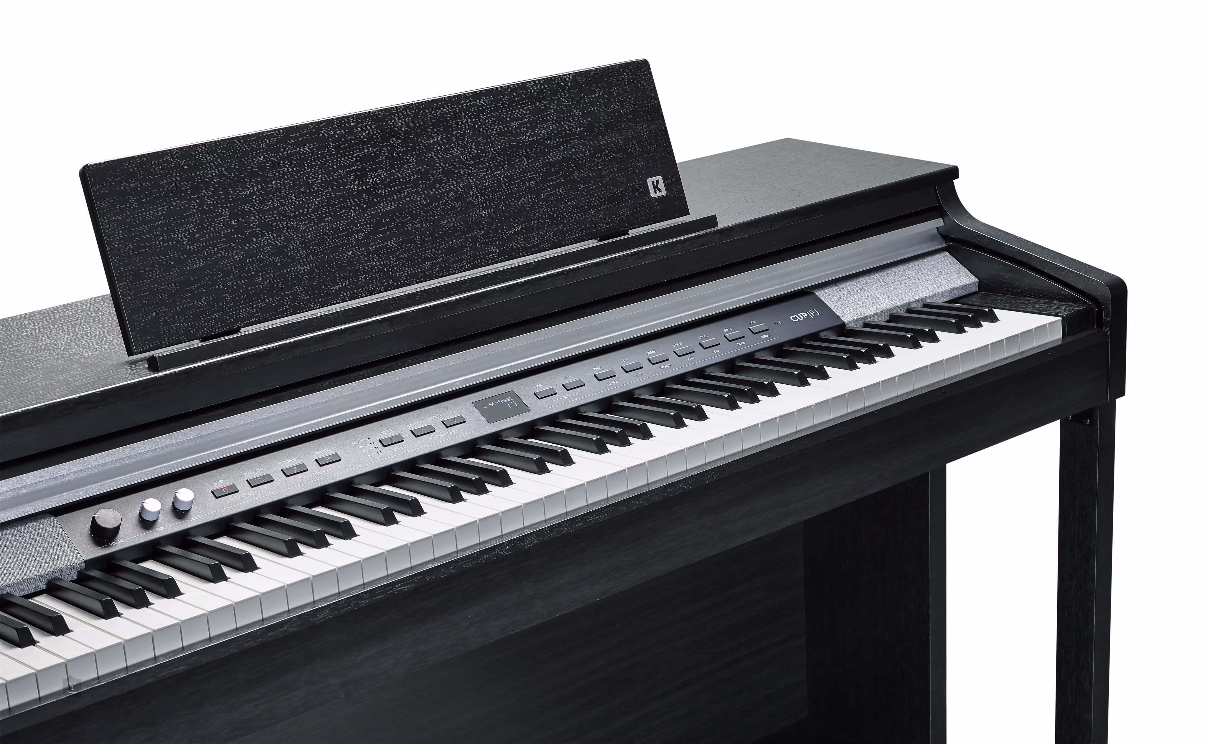 A Kurzweil CUP | P1 egy otthoni digitális zongora H1 Ivory billentyűzettel, 88 teljes méretű billentyűvel és masszív fa állvánnyal.