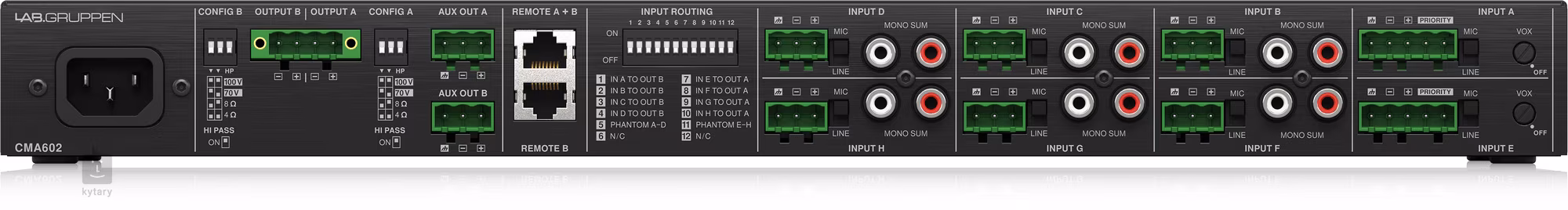 A Lab Gruppen CMA602 egy kétzónás, 8 csatornás bemeneti erősítő, amely tökéletes megoldás olyan kereskedelmi és ipari alkalmazásokhoz, amelyek nagyszerű hangzást igényelnek energiahatékony üzemeltetési költségekkel kombinálva.