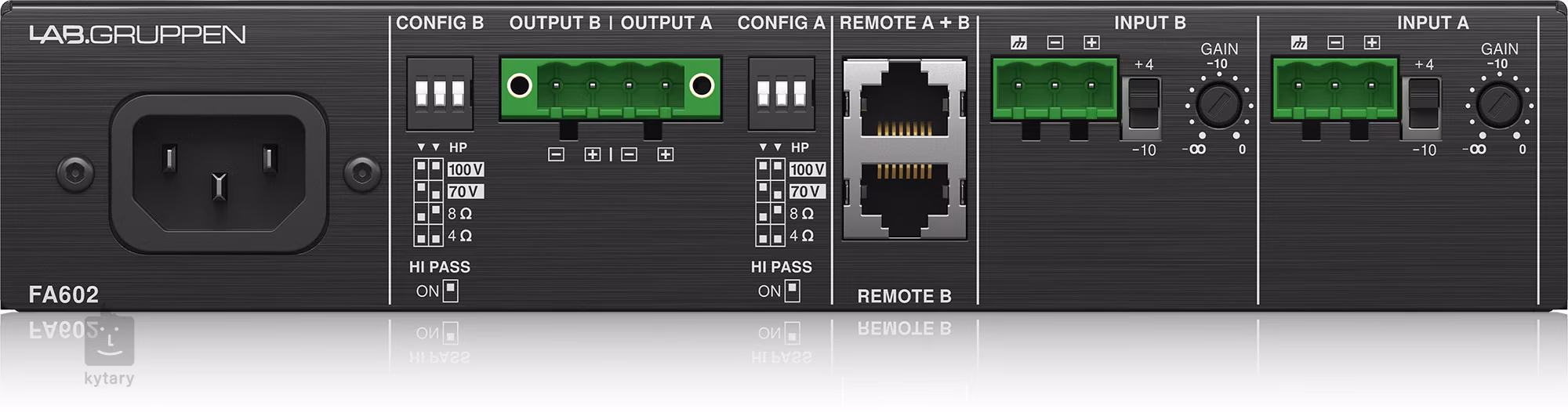 Az FA602 2x 60 W teljesítményű, és nagyszerű hangzást biztosít az étterem, üzlet, szálloda hangszóróihoz, illetve a vállalati és egyéb helyszínekhez, ahol háttérzenét kell futtatni, vagy ahol hangosbeszélő rendszerrel kell rendelkezni. A hangzás két zóna független beállításával osztható el. A bemeneti konfiguráció a hátoldalon van beállítva, a bemeneti jeleket Euroblock csatlakozókon keresztül kell csatlakoztatni, +4 / -10 dB bemeneti erősítéssel és állítható üzemmóddal.