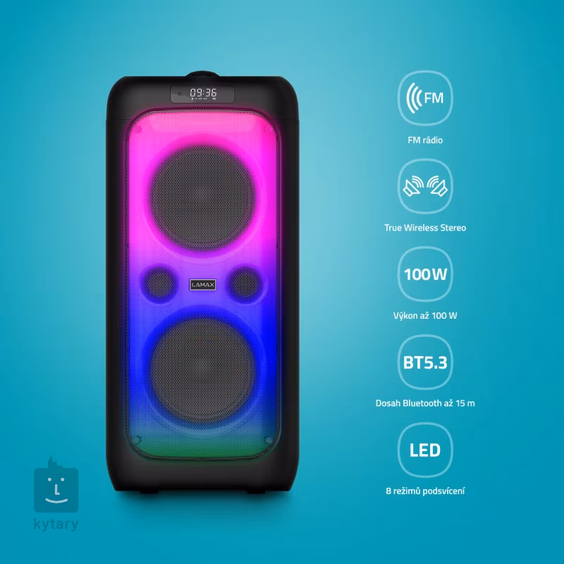 A LAMAX PartyKing1 Plus egy modern, hordozható hangszóró nagyszerű 100 W-os teljesítménnyel, amely könnyedén bármely rendezvény királya lesz. Nem fog zavarba hozni a középiskolai esküvődön, az egész utca megtudja tőle a kerti partidat, és még nagyobb sebességre kapcsolsz vele az edzőteremben. Ja, és énekelni és gitározni is tudsz rajta keresztül. A kétsávos kialakításnak, az EQ-nak és a fejlett BeatBass® technológiának köszönhetően olyan mély basszusokat élvezhetsz, amelyek kétségtelenül felpörgetik a ritmust.