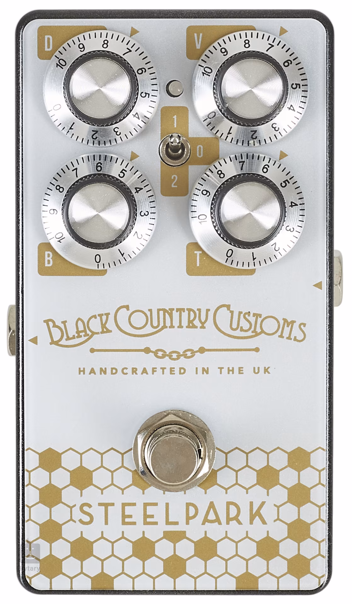 A Steelpark a brit Laney márka Black Country Customs sorozatából egy sokoldalú erősítő, amelyet minden gitáros értékelni fog, akinek szüksége van arra, hogy "felrúgja" gitárja teljesítményét, és ugyanakkor több levet adjon a hangjához. Ez az analóg pedál 30 dB maximális hangerő-növelést és kiváló hangszerkesztési lehetőségeket kínál négy potenciométerrel - a Drive segítségével a kompresszió és a torzítás mértékét állíthatod be, a Volume szabályzóval a kimeneti hangerőt, a kétsávos Bass és Treble EQ-val pedig a magas- és mélyfrekvenciákat állíthatod be.