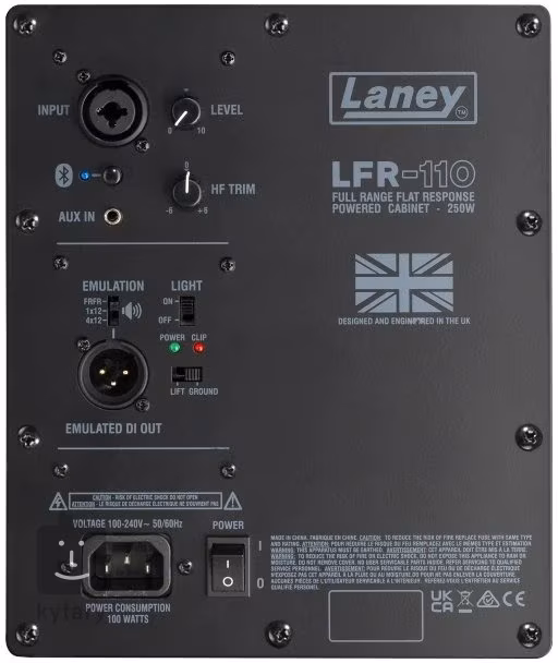 A Laney LFR-110 egy FRFR (Full Frequency Flat Response) aktív gitárhangszóró250 W teljesítménnyel, amely lehetővé teszi, hogy digitális erősítője/profilozójának stúdióhangzását hűen átadja a koncertszínpadon. A hangszóróház egy tíz hüvelykes egyedi hangszóróval és egy hüvelykes meghajtóval van felszerelve. A hangszóró hátsó paneljén található egy kombinált XLR/6,3 mm-es jack bemenet hangerő-szabályzóval és LED-es clipping jelzővel, szimmetrikus XLR DI kimenet a hangszóró közvetlen csatlakoztatásához PA-hoz, kapcsolható földeléssel, hangszóró-emuláció (FRFR, 1x 12 és 4x 12 módok), Bluetooth-kapcsolatot – azaz audio streaming lehetőséget (két LFR-110 párosítható és sztereóban streamelhető), Aux In külső audio forrásokhoz, HF TRIM vezérlőt a magas hangok beállításához (kiemelés, levágás) és kapcsolható LED háttérvilágítást az előlapon.