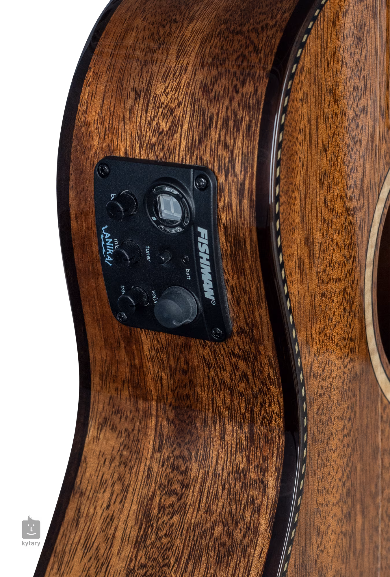A hangzás erősítéséről egy Fishman Kula előerősítő gondoskodik háromsávos EQ-val és beépített hangolóval. A stílusos kivitelezést a diófa peremkötés emeli ki, amelyet díszes kötés, figurás juhar rozetta és fényes fényezés egészít ki. Az ukulele puha tokban érkezik.