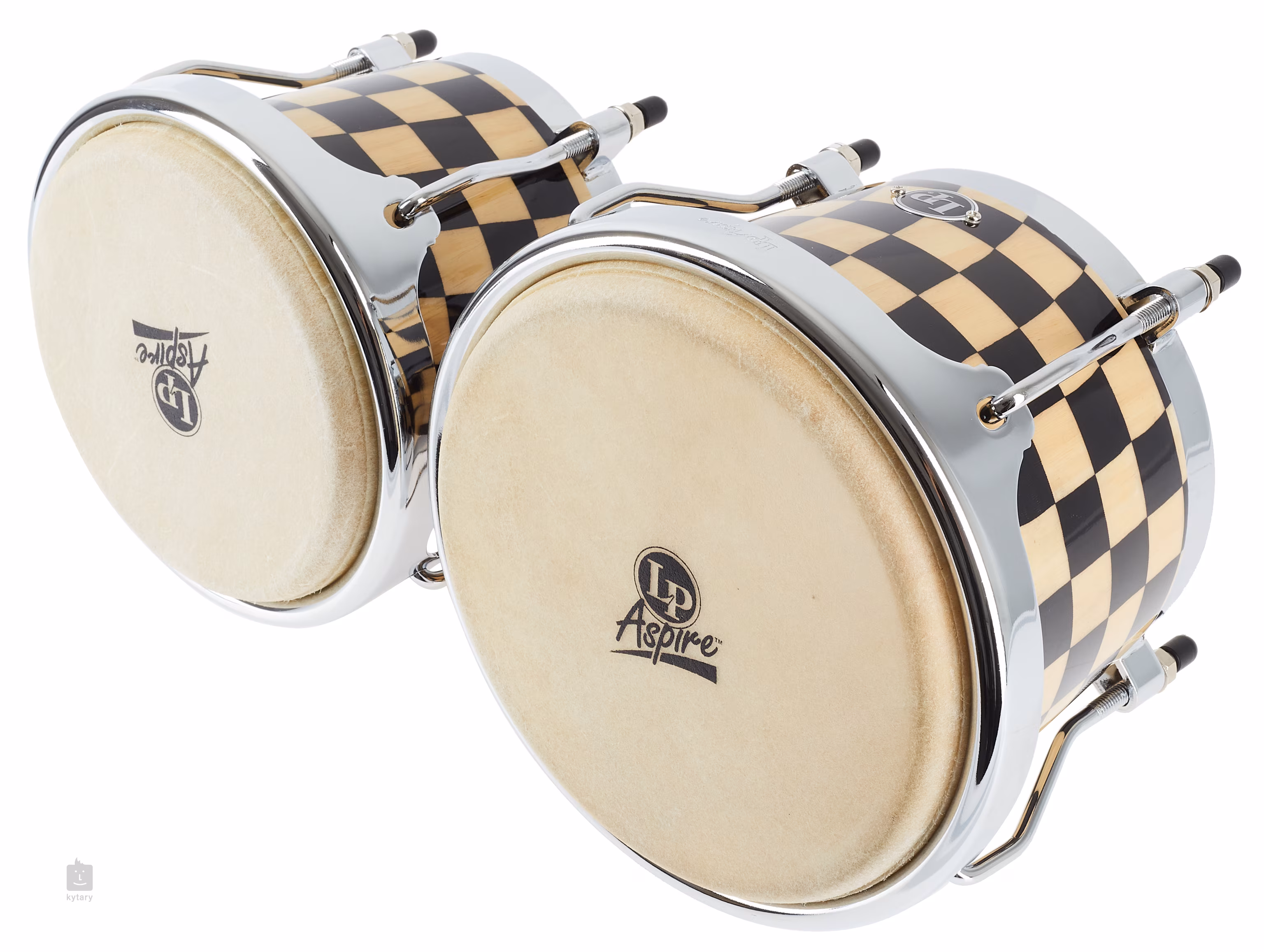 A Latin Instruments bongók világszerte nagyon népszerűek, különösen a professzionális kivitelezésnek, a kiváló minőségnek és a megfizethető árnak köszönhetően. Az Aspire sorozat 6-3/4 és 8" átmérőjű sziámi tölgyfa testet és bőr fújtatót kínál, ami a doboknak az ezekre a hangszerekre jellemző erőteljes és tiszta hangzást adja. Egy hangolókulcs is tartozik hozzá.