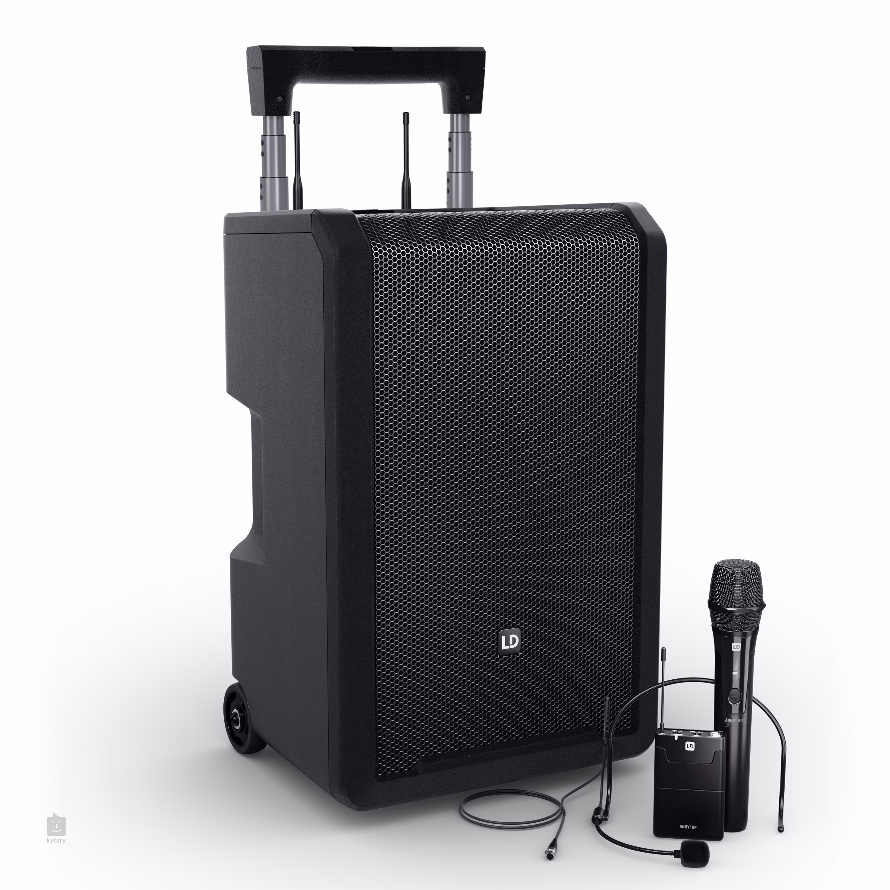 Az LD Systems ANNY 10 HBH 2 B8 egy mobil PA-készlet, amely tartalmaz egy ANNY 10 kompakt hangszórót beépített vezeték nélküli FM-vevő modullal, egy dinamikus énekmikrofont beépített adóval és egy fejhallgató mikrofont testre szerelt adóval.