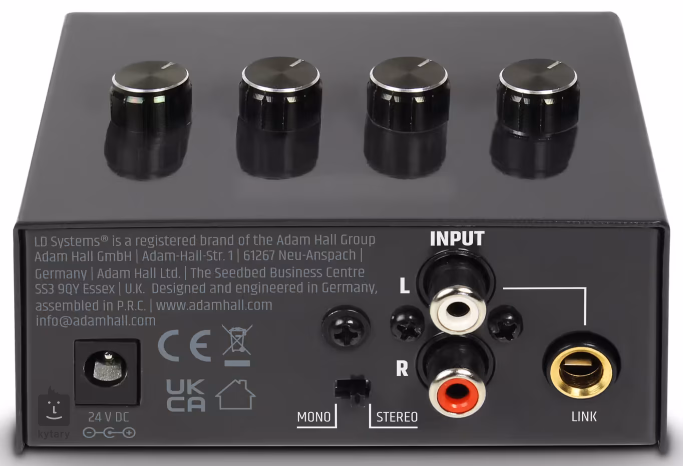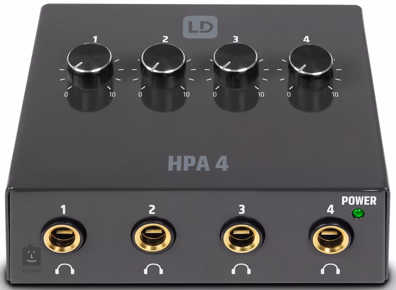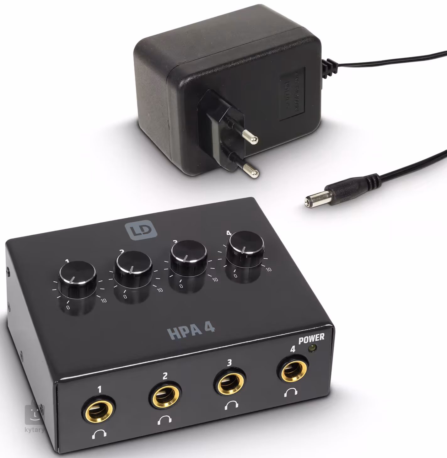 Kompakt fejhallgató erősítő négy fejhallgató kimenettel, mindegyik saját hangerőszabályzóval. A kimenet átkapcsolható mono és sztereó jelek között. Az adaptert mellékeljük.