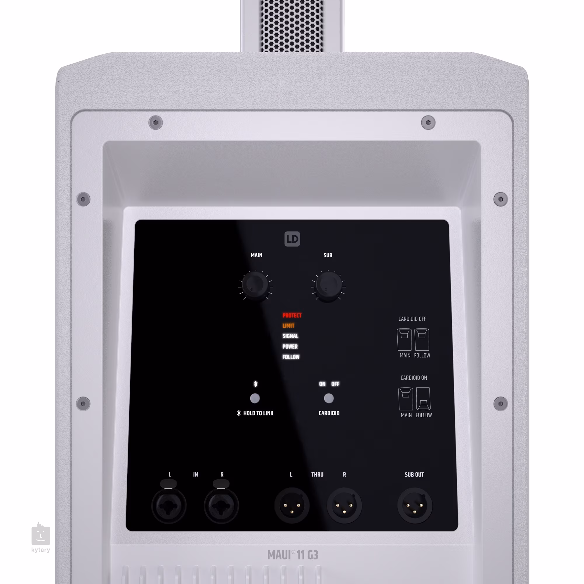 A MAUI 11 G3 W egy sokoldalú, kompakt PA-rendszer 730 W RMS-teljesítménnyel, két 8 hüvelykes mélysugárzóval és optimalizált kialakítással, négy basszusreflex-nyílással a jobb basszusválasz érdekében, hat 3,5 hüvelykes középsugárzóval és két 2 hüvelykes magas hangszóróval, kardioid oszlopos hangszóró-konfigurációval, AAC-kódolással a Bluetooth HD 5 számára.0 streaming, DynX DSP technológia a torzításmentes hangzásért még nagyobb hangerőnél is, valamint automatikus felismerő rendszer a gyors és egyszerű beállítások és a beállítások vezérlése érdekében. A mélysugárzó szerkezete 15 mm vastag nyírfa rétegelt lemezből, míg az oszlopos hangszórószerkezet porszórt alumíniumból készült. Két oldalsó fogantyú teszi egyszerűvé a mélysugárzó kezelését.