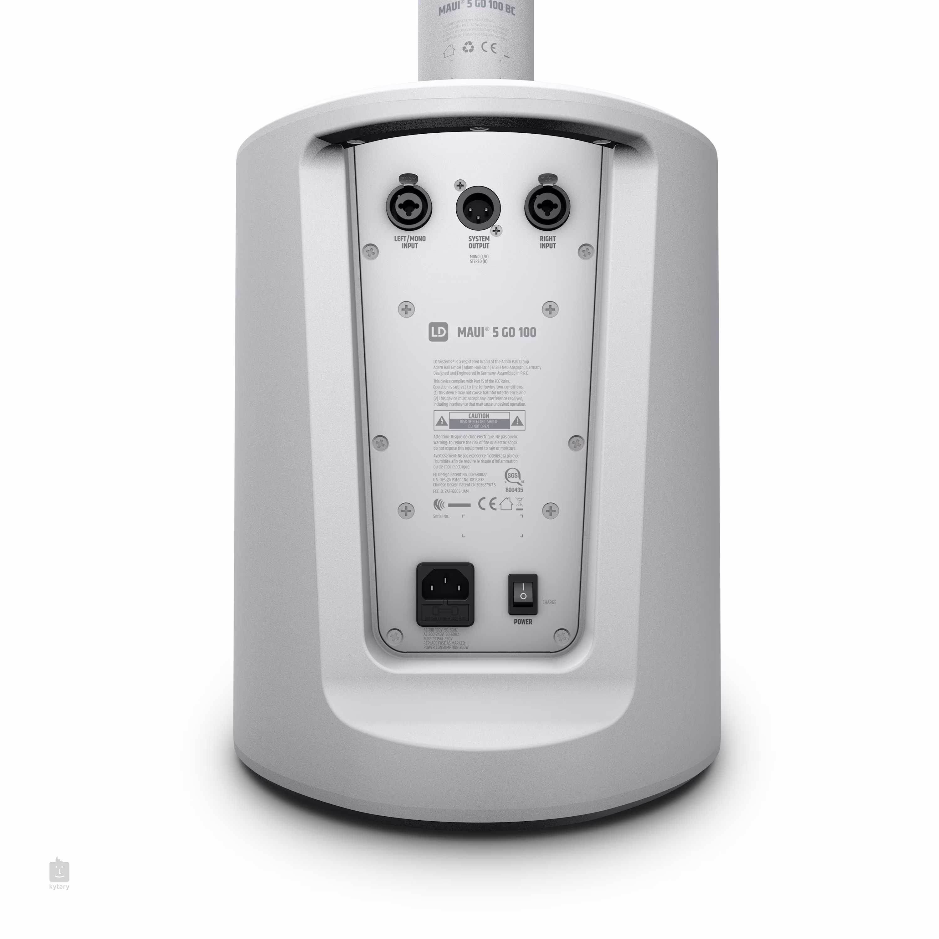 A MAUI 5 GO 100 egy ultrakompakt PA-rendszer négycsatornás keverővel és Bluetooth-kapcsolattal. Súlya 12,4 kg, maximális teljesítménye 800 watt. A D-osztályú erősítő számos védelmi áramkörrel (Limiter, Thermal, Short) van felszerelve a rendszer zavartalan működése érdekében. A főpanelen a standard sztereó bemenet (Line In) mellett mikrofon-, hangszer- és MP3-bemenetek is találhatók, mindegyik külön hangerőszabályzóval. A Bluetooth-eszközzel való szinkronizáláshoz egyszerűen tartsa lenyomva a vezérlőt. A három szatellit és a mélysugárzó közötti gyors és kényelmes csatlakozást a kábelektől mentes oszloprendszer teszi lehetővé. A MAUI 5 GO 100 alkalmas utcai zenészek, vállalati konferenciák és egyéb olyan alkalmazások számára, ahol nincs hálózati áramellátás. A beépített akkumulátor egyetlen feltöltéssel akár 12 órán át is üzemelhet.
