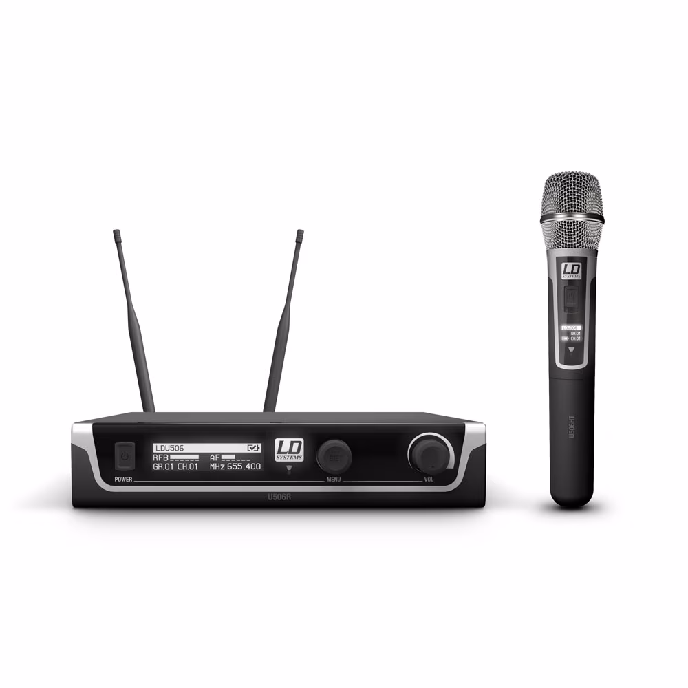Az LD Systems U500 sorozatú vezeték nélküli rendszereit Németországban fejlesztették ki, és professzionális hangzást kínálnak nagyon kedvező áron. A mikrofon akár 100 m távolságig is használható, az U505 és U506 modellek esetében pedig akár 12 rendszer is használható egyszerre. Az automatikus keresés magától gyorsan megtalálja az elérhető frekvenciát, az adó és a vevő párosítása pedig egyetlen gombnyomással történik. A működtetés így nagyon egyszerű. A mikrofonadó cserélhető mikrofonbetétekkel rendelkezik. Ez a modell kardioid iránykarakterisztikájú dinamikus betétet tartalmaz. Két AA elemmel akár 10 órán át is működhet.