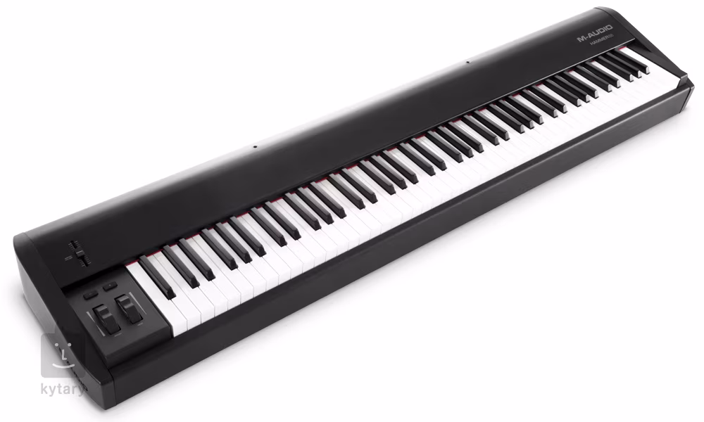 Az M-Audio Hammer 88 segítségével az összes virtuális zongorát és egyéb hangszert úgy vezérelheted, mint egy professzionális színpadi vagy akusztikus zongorán. A kiegyensúlyozott billentyűzet kalapács-mechanikával lehetővé teszi a legnehezebb részek értelmezését is. Van egy fader a hangerőszabályozáshoz, de hozzárendelheti a DAW bármely paraméterének vezérléséhez, valamint egy hangmagasság- és modulációs kerék. A fel/le gombok lehetővé teszik a bankok vagy az egyes zeneszámok közötti navigációt.