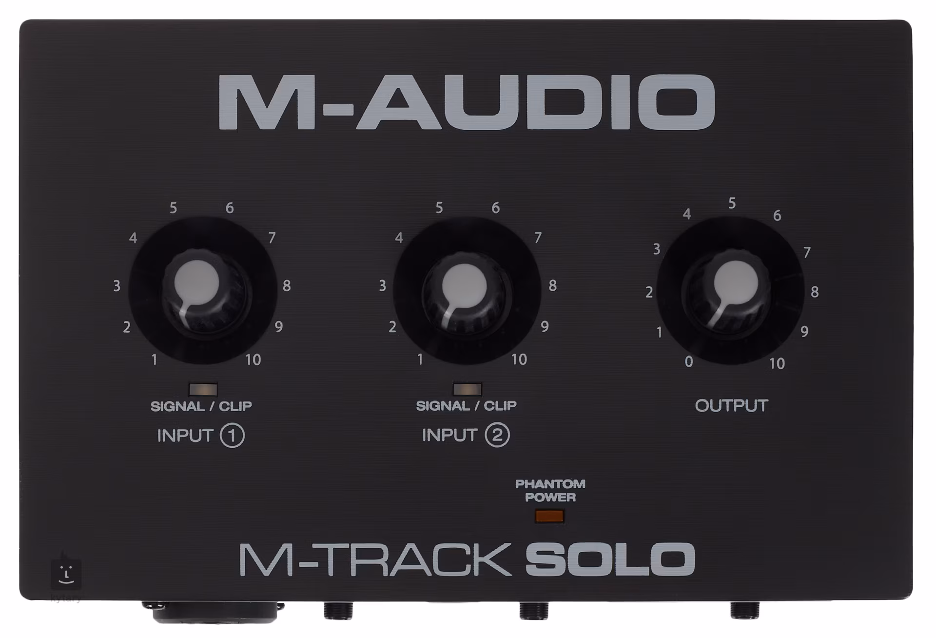 Az M-Track Solo előlapján található egy kombinált mikrofonbemenet és egy vonalbemenet egy hangszer számára. A fejhallgató-kimenet részletes, késleltetésmentes monitorozást biztosít. A főpanelen ezután minden egyes csatornához egy robusztus hangerőszabályzó és a kimeneti jel hangereje áll rendelkezésre. A hátoldalon található egy USB-port a PC-hez vagy laptophoz való csatlakozáshoz, valamint sztereó RCA csatlakozók a hangszórókhoz való csatlakozáshoz.