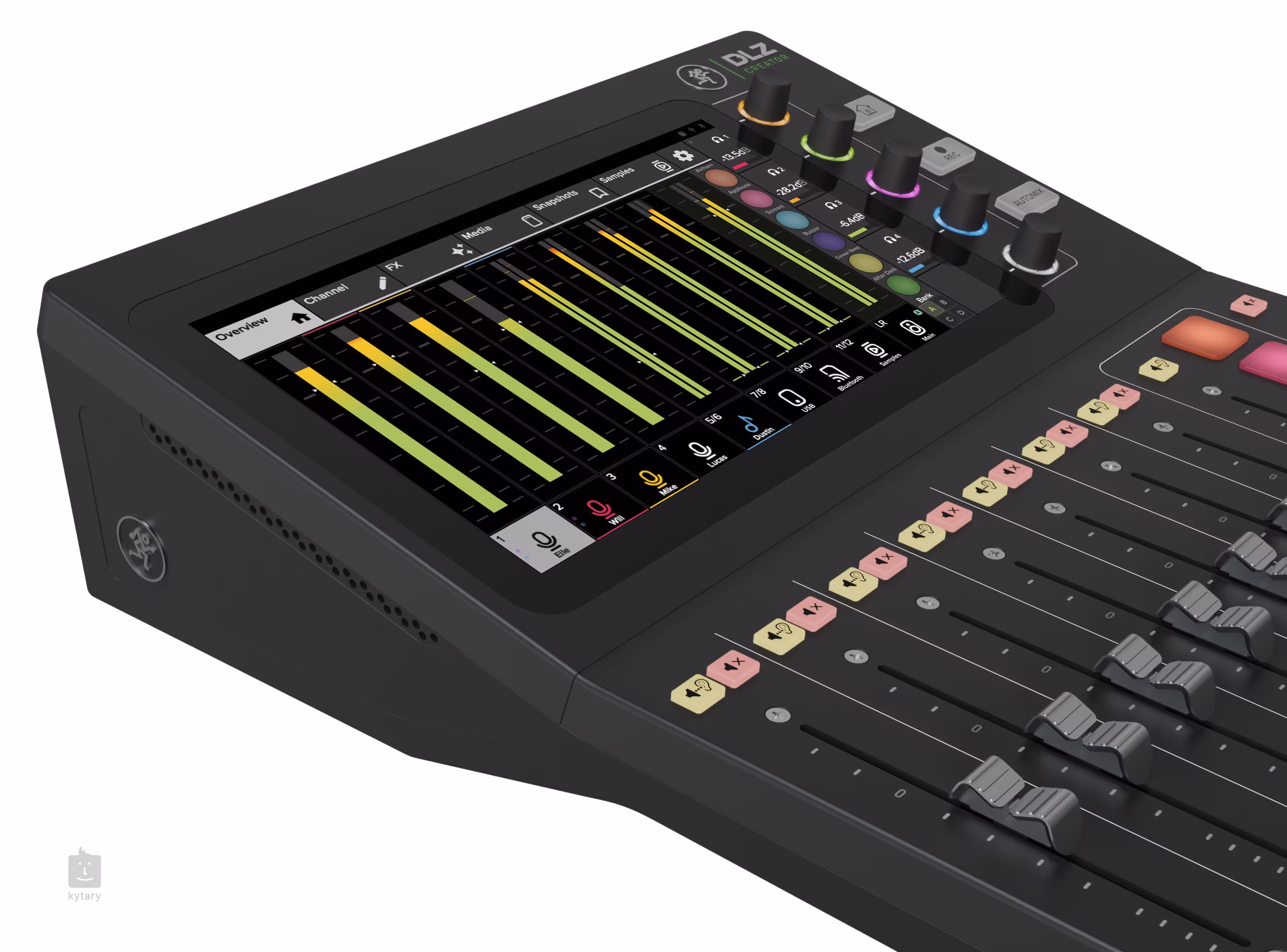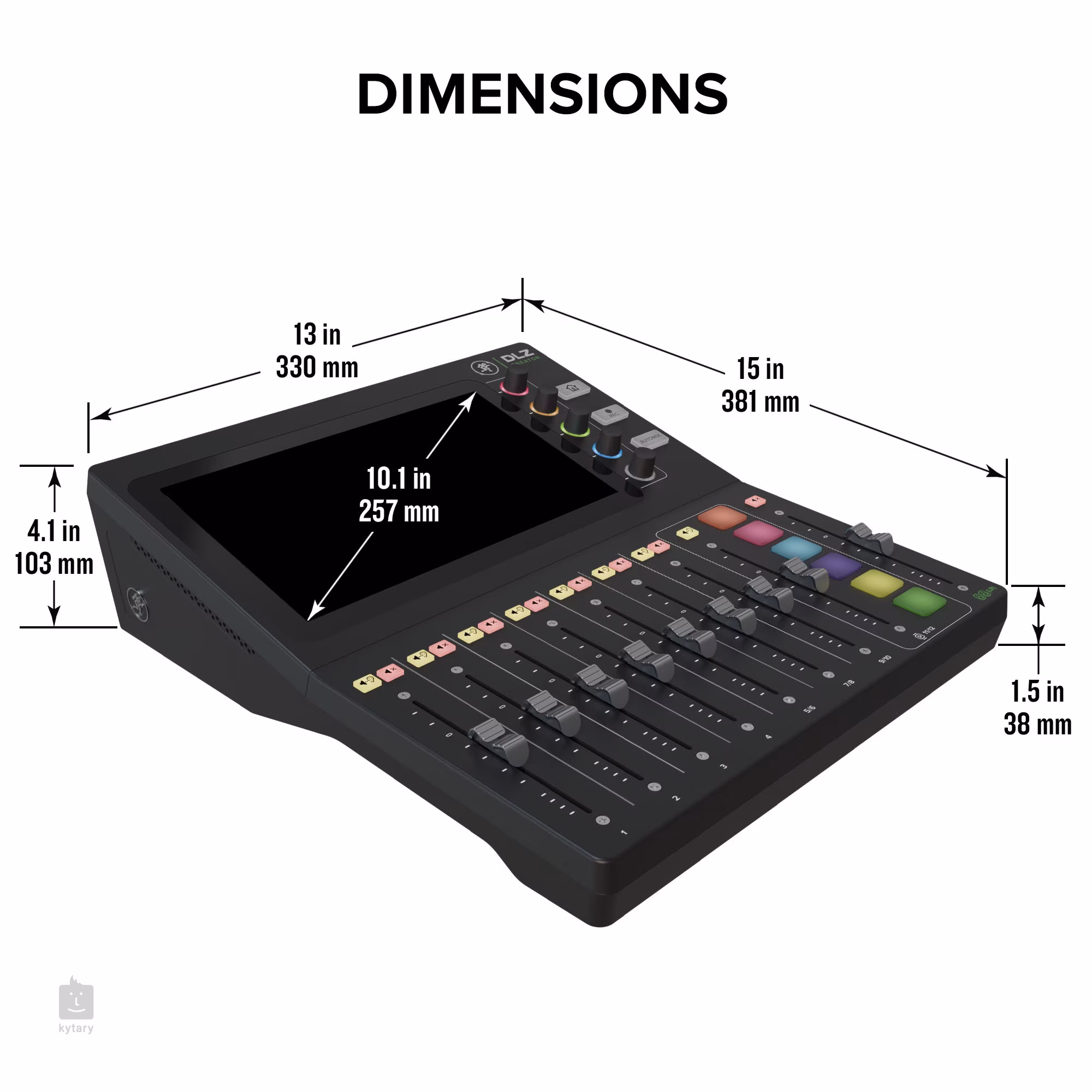 10,1" color touchable diplay, 9 professional 100 mm faders, 5x encoder, 6x RGB pads