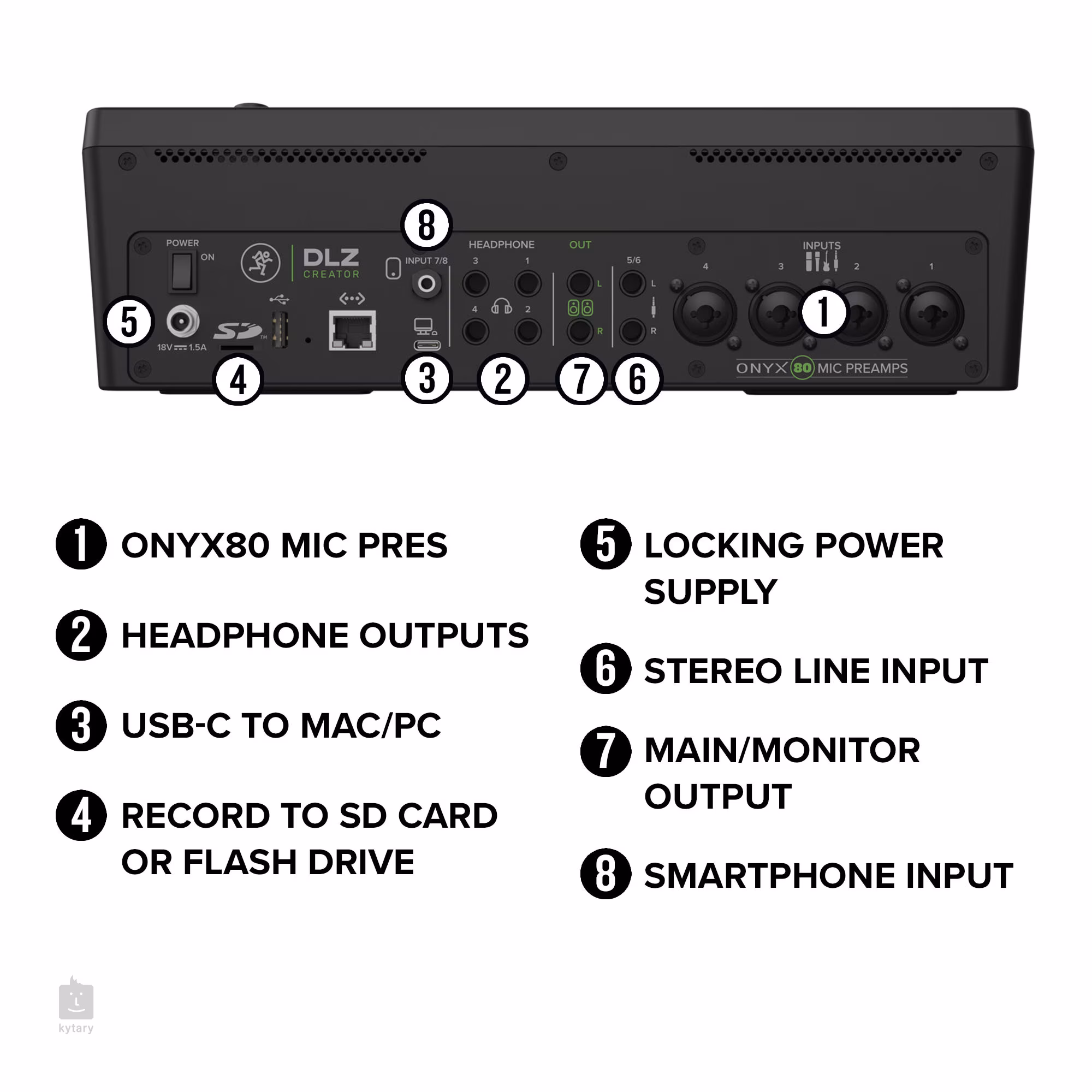 Professzionális stúdió keverőpult asztali számítógépéhez A DLZ Creator a Mackie több évtizedes tapasztalatát hasznosítja, hogy minden részletre odafigyeljen a produkciója során. Az Onyx80 előerősítőktől kezdve, amelyek a kisebb hangerejű mikrofonokat is hangosan és tisztán szólaltatják meg, egészen az egyes vendégek számára testreszabott fejhallgató-keverésekig, a DLZ Creator egy professzionális stúdió keverőpult előnyeit nyújtja, plusz nagyon intuitív vezérlést.