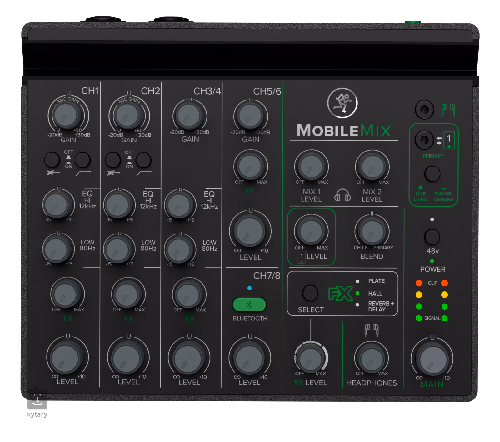 A MobileMix a legendás építési minőséggel és kiváló hangzással rendelkezik, amelyről a Mackie világszerte ismert. Két teljesen felszerelt, kombinált XLR / 6,3 mm-es jack csatlakozókkal és fantom +48V-os tápellátással rendelkező mikrofon-előerősítővel ellátott csatorna a mikrofonok alternatív csatlakoztatása mellett a nagy impedanciájú Hi-Z jelek (elektromos gitár, basszusgitár stb.) számára is használható. Csatlakoztasson egyszerre két okostelefont vagy fényképezőgépet a Jack 3,5 mm-es TRRS-csatlakozók segítségével, és küldjön és fogadjon hangot mindkettőről. Csatlakoztasson külső forrásokat, például lejátszóeszközöket, élő keverőpultokat, laptopokat, vonalszintű hangszereket, például billentyűzeteket és egyebeket a sztereó TRS vonalbemeneti csatorna segítségével.