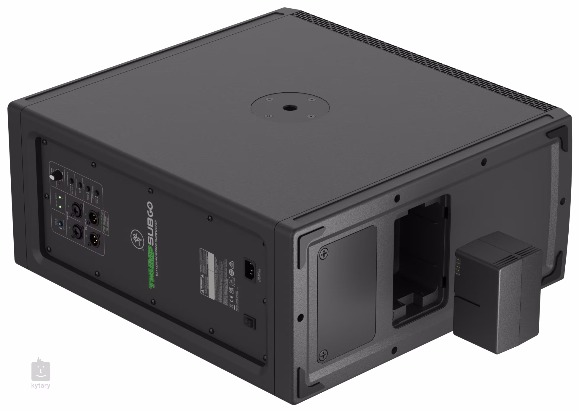 A Mackie ThumpSub GO két 8"-os mélysugárzóval és egy kiváló minőségű, akár 400 W teljesítményű D osztályú erősítővel van felszerelve. A mélysugárzó két akkumulátor foglalattal van felszerelve, amelyek együttesen akár 12 órás folyamatos működést biztosítanak. Egy akkumulátor használata esetén az üzemidő ennek a fele (csak az egyik akkumulátor tartozik a csomaghoz, a másikat külön kell megvásárolni).