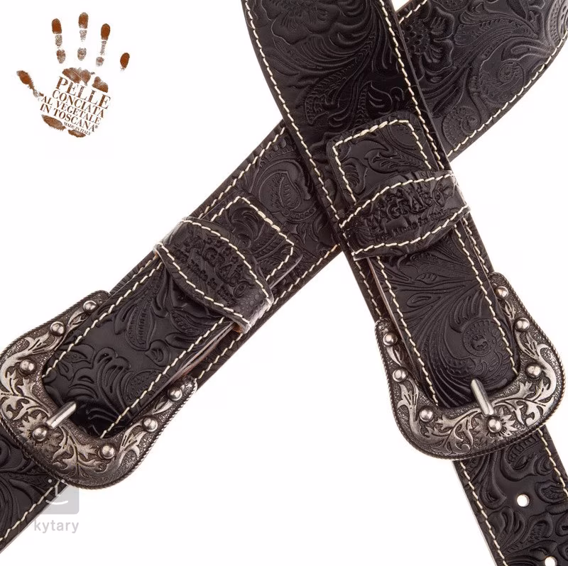 . Magrabò Twin Buckle TS Embossed Flores Black 7 cm