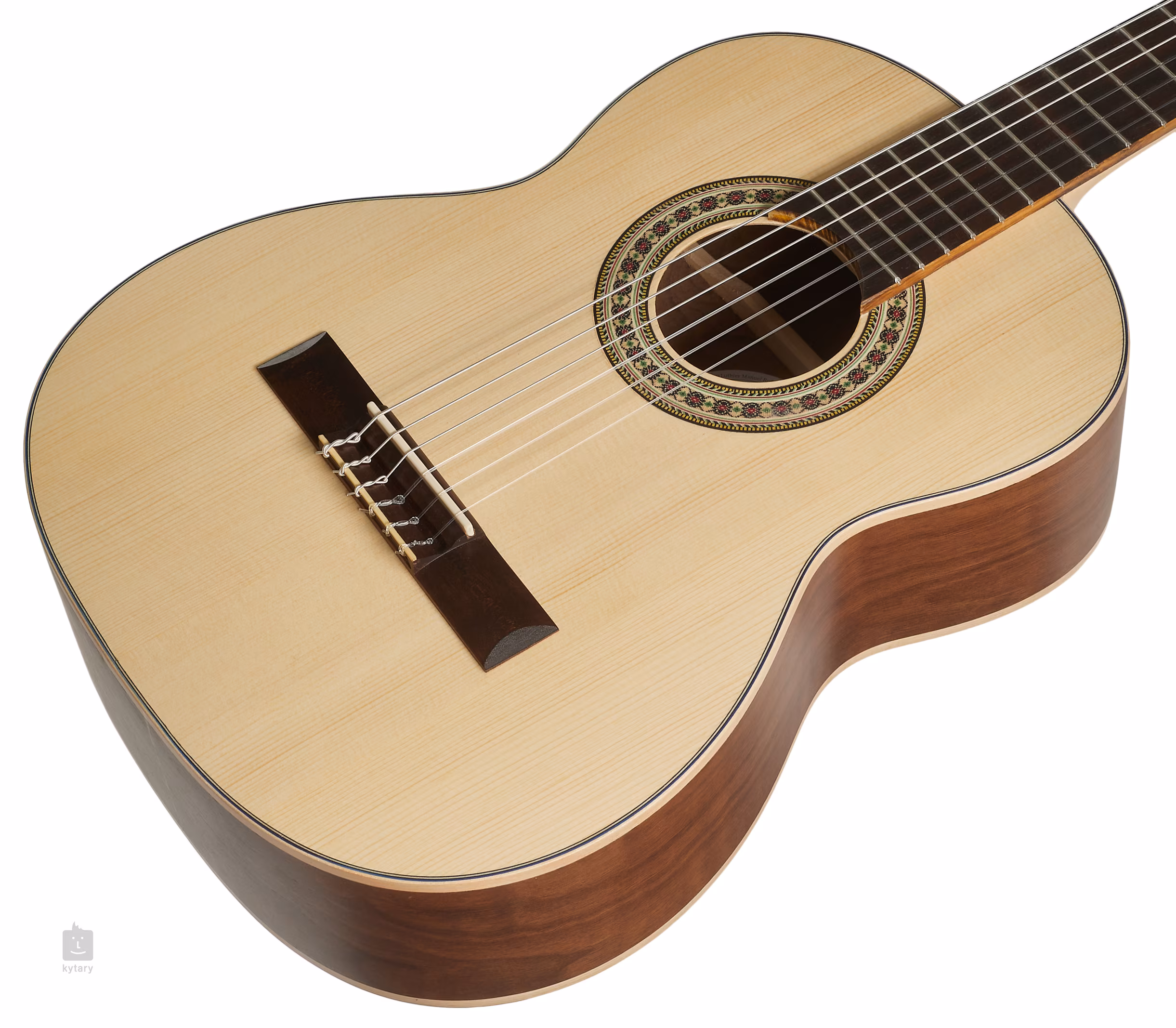 Az ECOLOGÍA sorozat E-53 1/2 méretű E-53 1/2 méretű gyermek klasszikus gitár. A hangszer előlapja tömör lucfenyőből, a hátlap és a lapok laminált diófából készültek. A gitár nyaka juhar, akácfa fogólap és fogólap, szintetikus bonoid anyagból készült, magas üvegtartalmú (TusQ anyaghoz hasonló) nulla bund és fogólap intarzia, holland gyártmányú Van Gent hangológépek fekete fogólapokkal, valamint hagyományos elemek juhar testkötés, díszes rozetta és diófa furnér a fejlécen formájában.