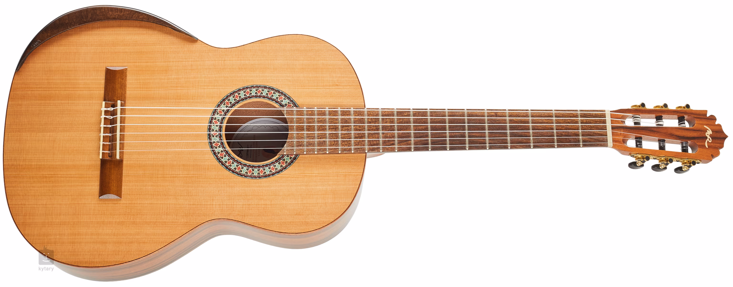A mahagóni nyakra ovangkol fogólap van ragasztva. A stabil hangolást a húrok nulla és kompenzált nyeregbundokon keresztül történő rögzítése garantálja, aranyozott líra nélküli mechanizmusokban, fekete fogólapokkal és ovangkol fogólappal. A stílusos kivitelezést a valódi spanyol nyak, a válltámasz, a fejléc pau ferro fafurnérja és a szatén ECO vízbázisú lakk hangsúlyozza.