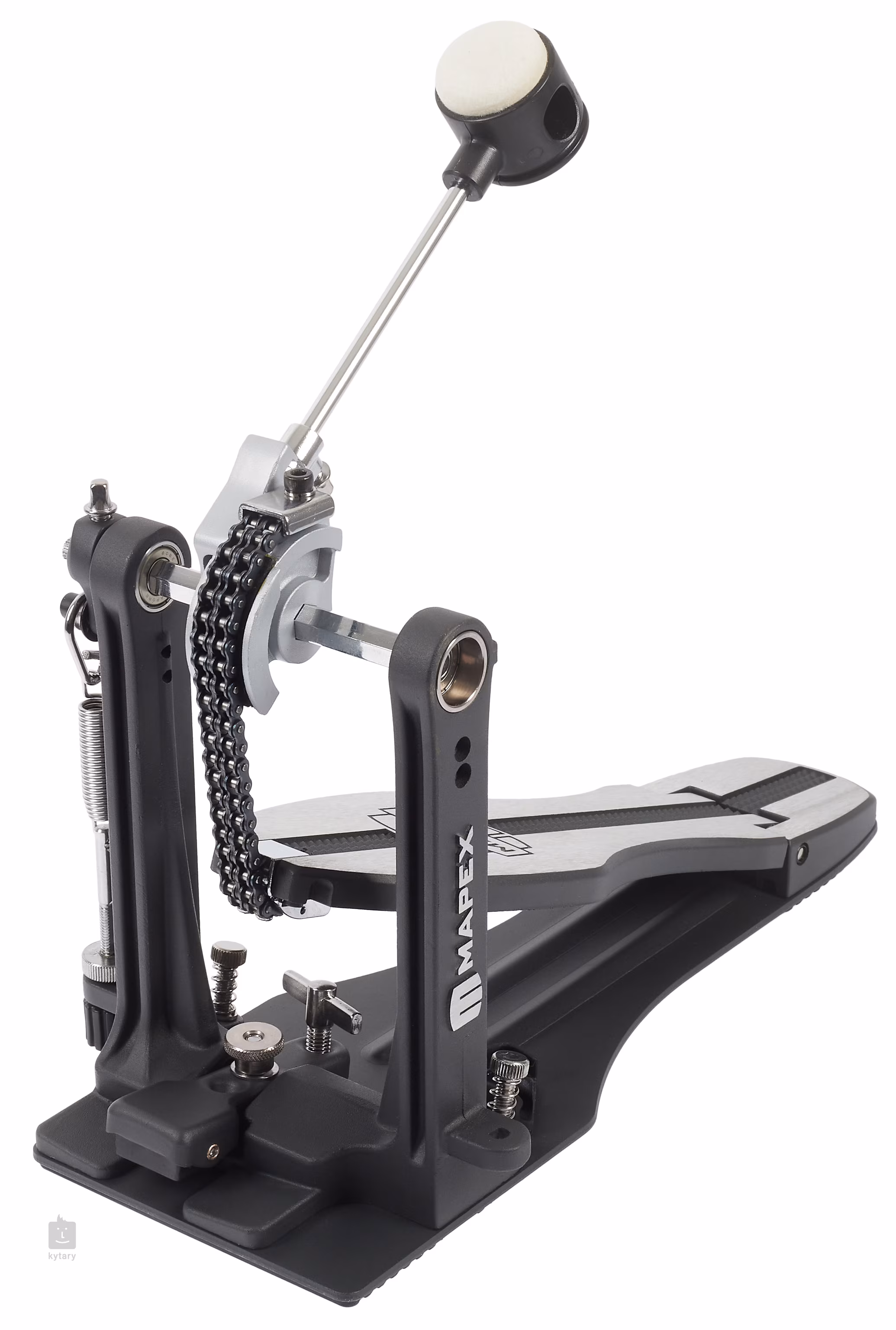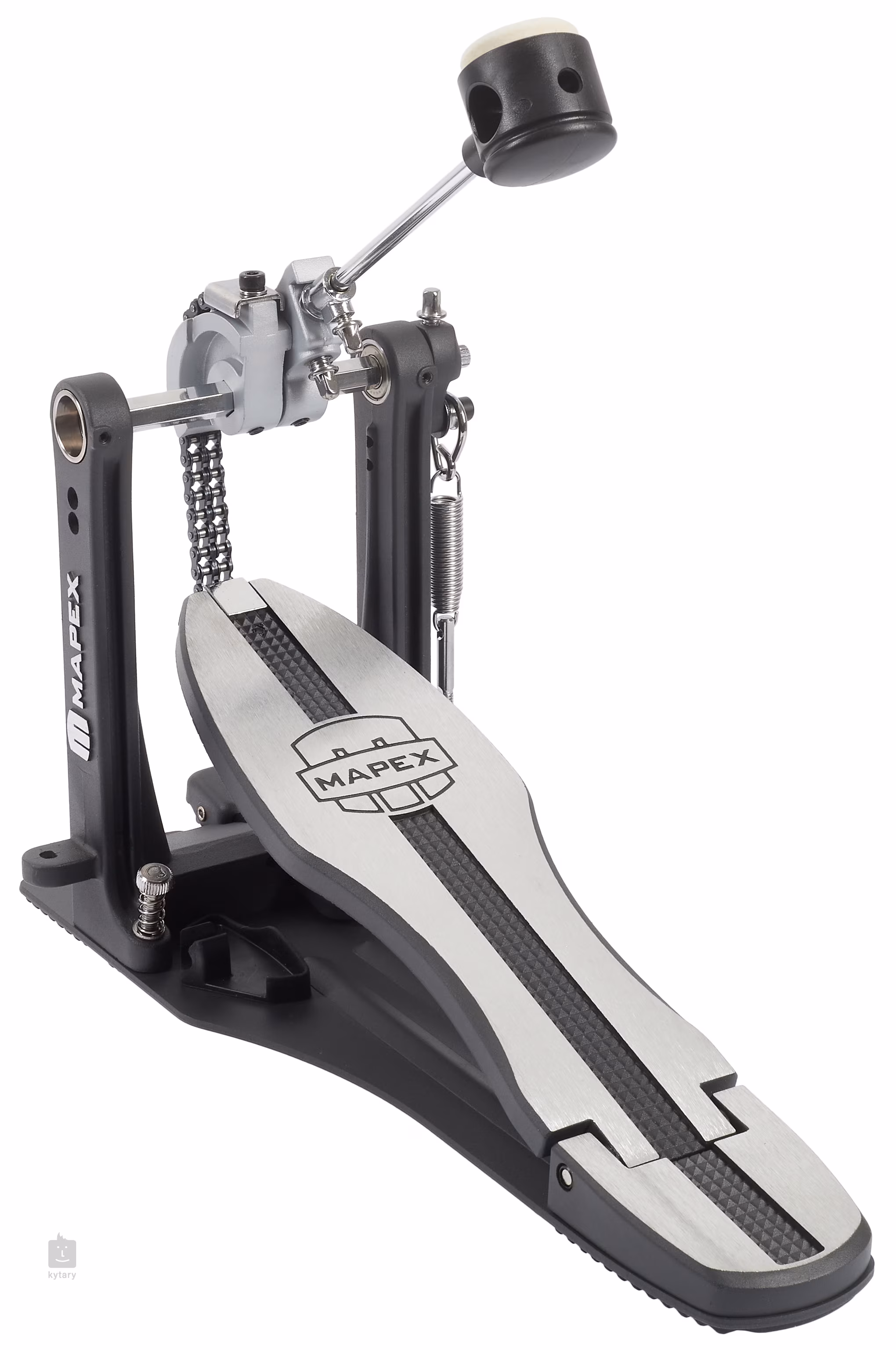 A Mapex P600 pedál kiváló ár/teljesítmény arányt kínál a dobosoknak. Olyan tulajdonságokkal rendelkezik, amelyek ebben az árkategóriában biztosan nem jellemzőek, mint például a dupla lánc a hosszabb élettartam érdekében, a kétoldalas ütő és mindenekelőtt a masszív talp, amely az egész pedál stabilitását adja, és lehetővé teszi a pontosabb és gyorsabb játékot.