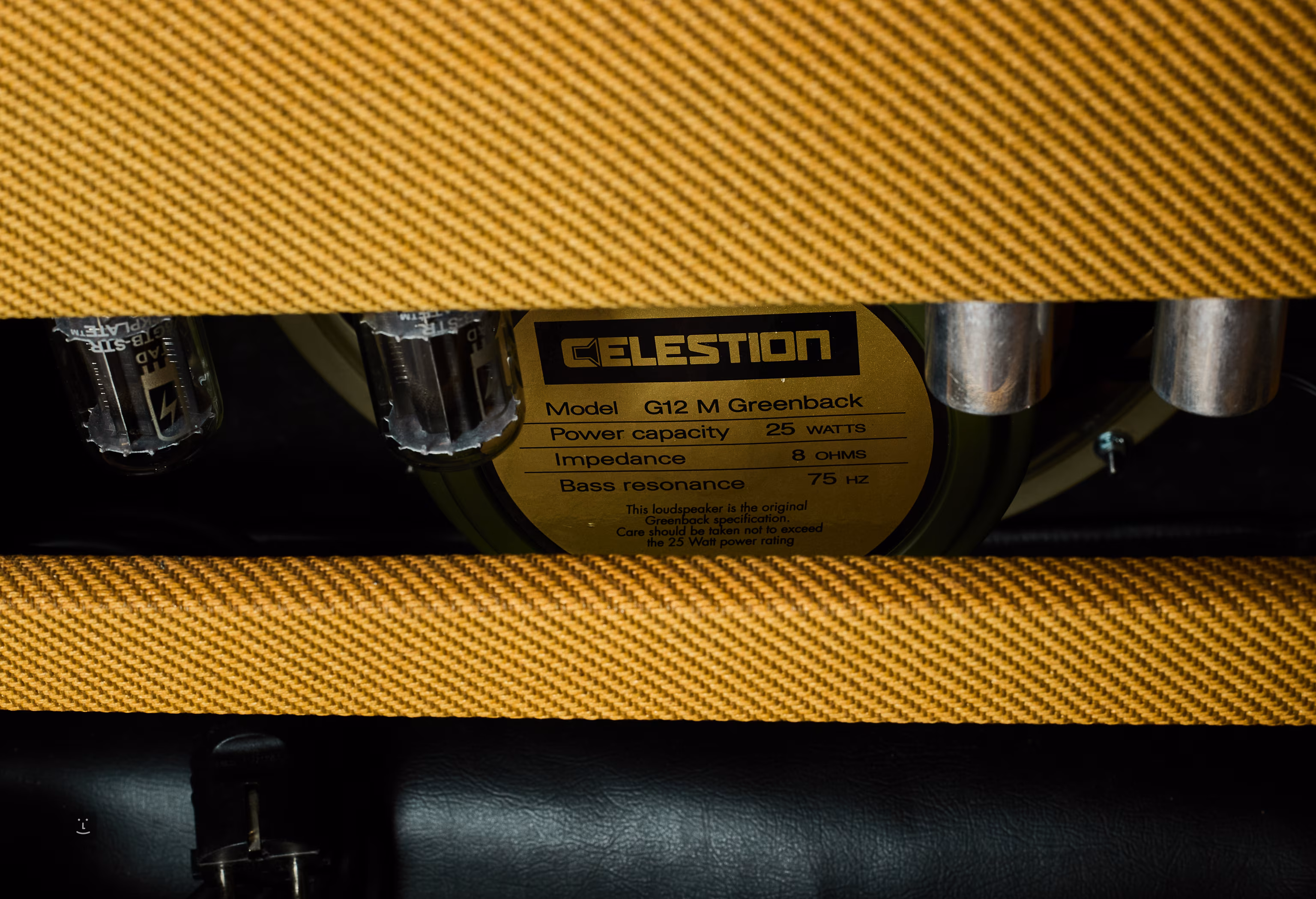 A kombo 12" Celestion G12-25M Greenback hangszóróval van felszerelve. A hangot 2 db 5881/6L6 elektroncső erősíti.