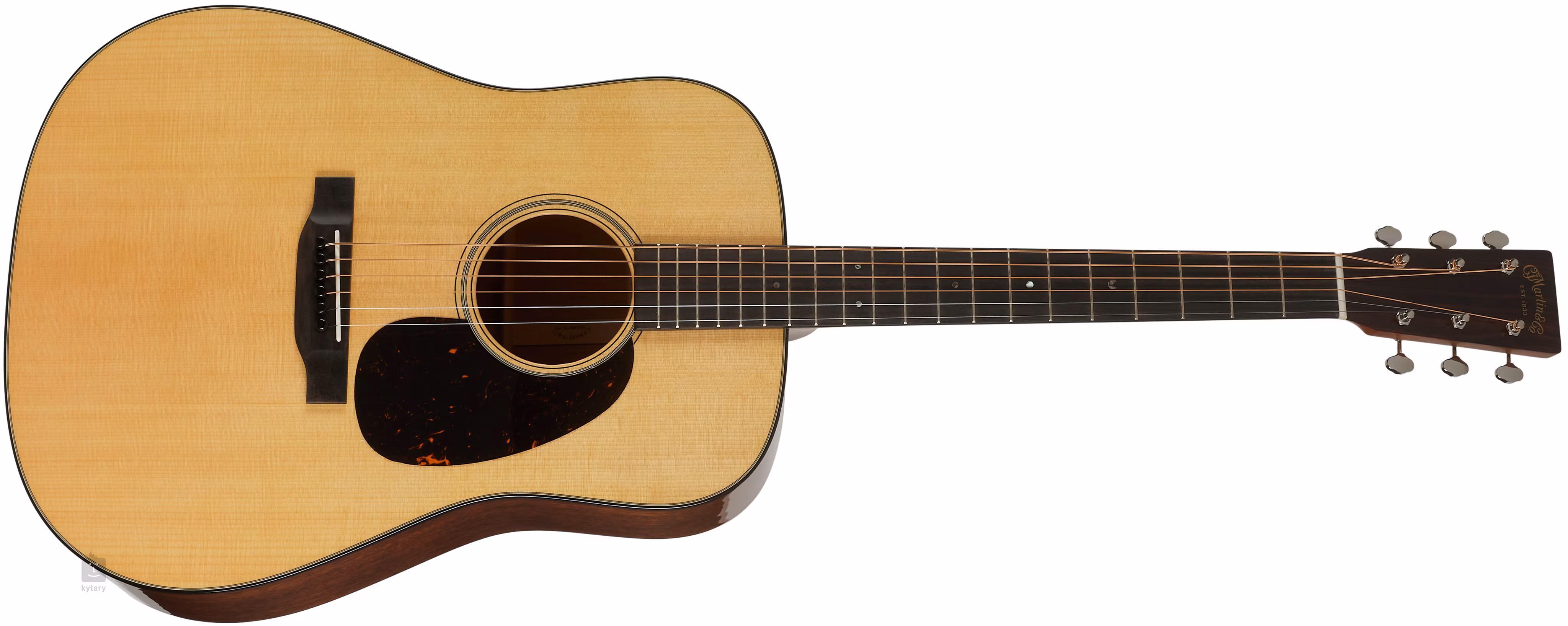 A fenyőfa elülső lap és a mahagóni hátsó lap és oldalak kombinációjaa DreadnoughtD-18 típusú gitárnak gazdag, tiszta hangzást biztosít, kiegyensúlyozott hangerejű és meleg hangzással. A fedlap rezonanciáját és a gitár általános jó akusztikai tulajdonságait speciális, csökkentett GE Scalloped (Golden Era) bordázás (Forward-Shifted X-Brace) erősíti.