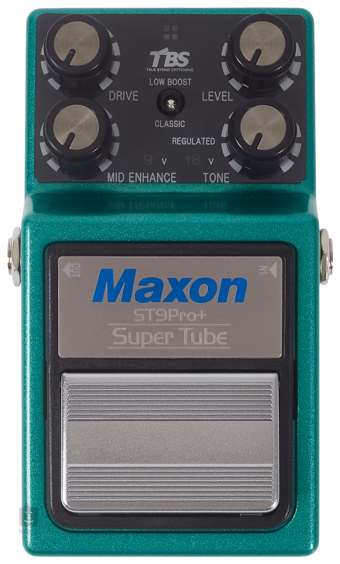 A Maxon ST-9 PRO+ az 1980-as évek Super Tube Screamer pedáljának frissített változata, amelynek áramköre a klasszikus OD-9/OD808-on alapul. A híres 808-ashoz képest a Maxon nagyobb kimenetet, több erősítést, kibővített hangzási lehetőségeket és 9/18V kapcsolót kínál, ha több headroomra van szükség - egyszerűen bluesos overdrive és egy igazi "dirt box". A Low Boost kapcsoló jelentősen megváltoztatja a hangzás karakterét egy vastag basszus alsó rész hozzáadásával, így a Mid Enhance szabályozó jelenléte is indokolt.