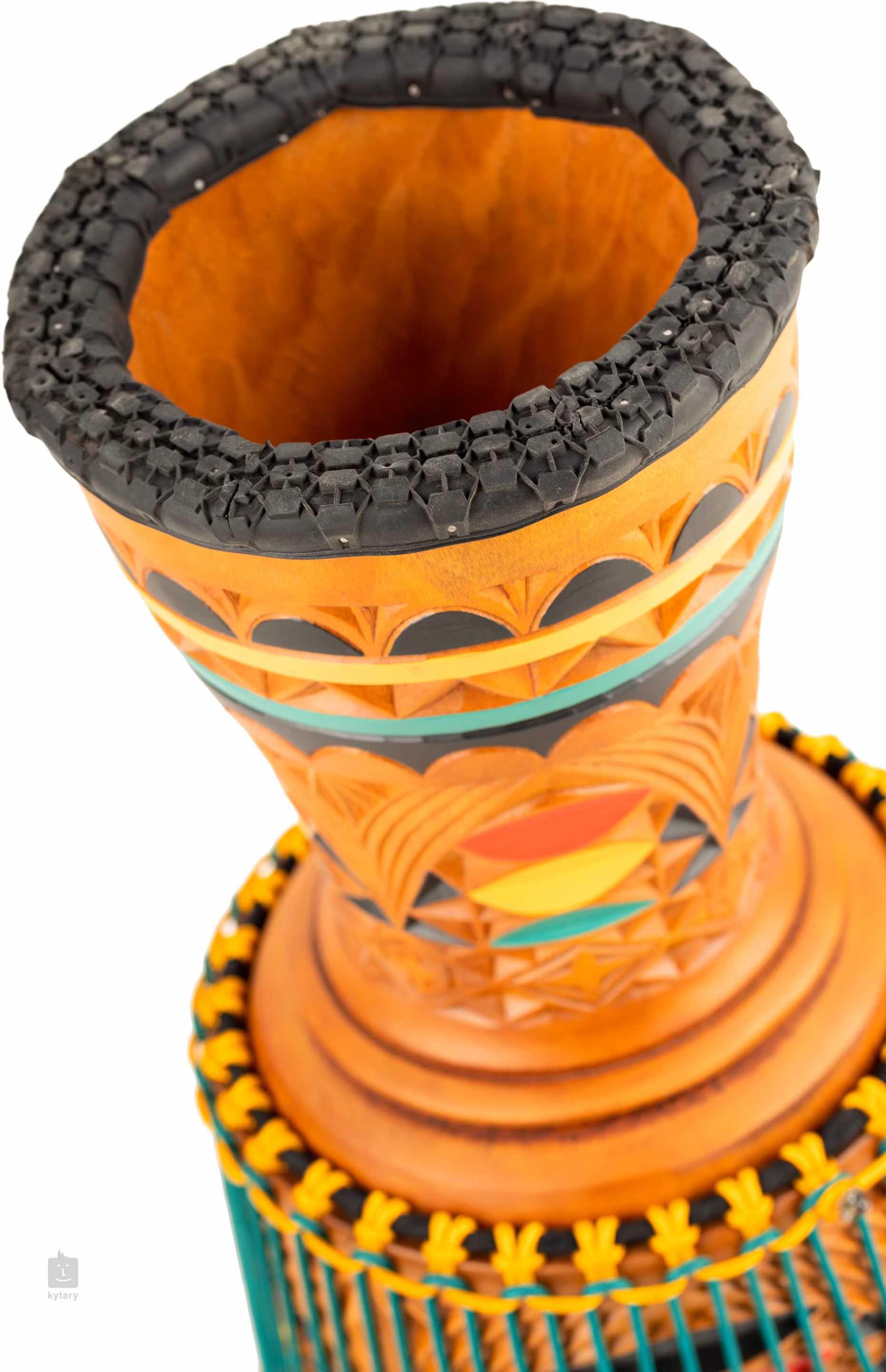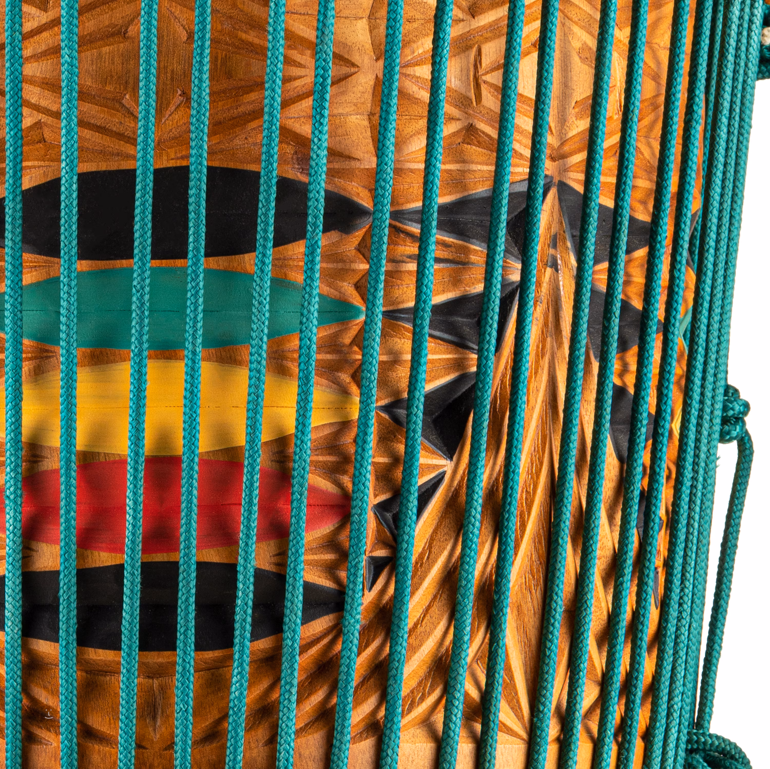 A djembe teste egyetlen darab tömör mahagónból készül, ami maximális rezonanciát és tartósságot garantál. A megbízható és stabil hangolásról a hagyományos Mali-Weave zsinórrendszer gondoskodik, előre megfeszített HTP nylon zsinórokkal, amelyek színe harmonikusan kiegészíti a hangszer egészének kialakítását. A 12 hüvelykes átmérő és a 24 hüvelykes magasság ideális a telített hangzás és a széles dinamikai tartomány eléréséhez. Praktikus részlet a test alján található strapabíró gumi talp, amely megvédi a hangszert a karcolódástól és biztosítja stabilitását játék közben.