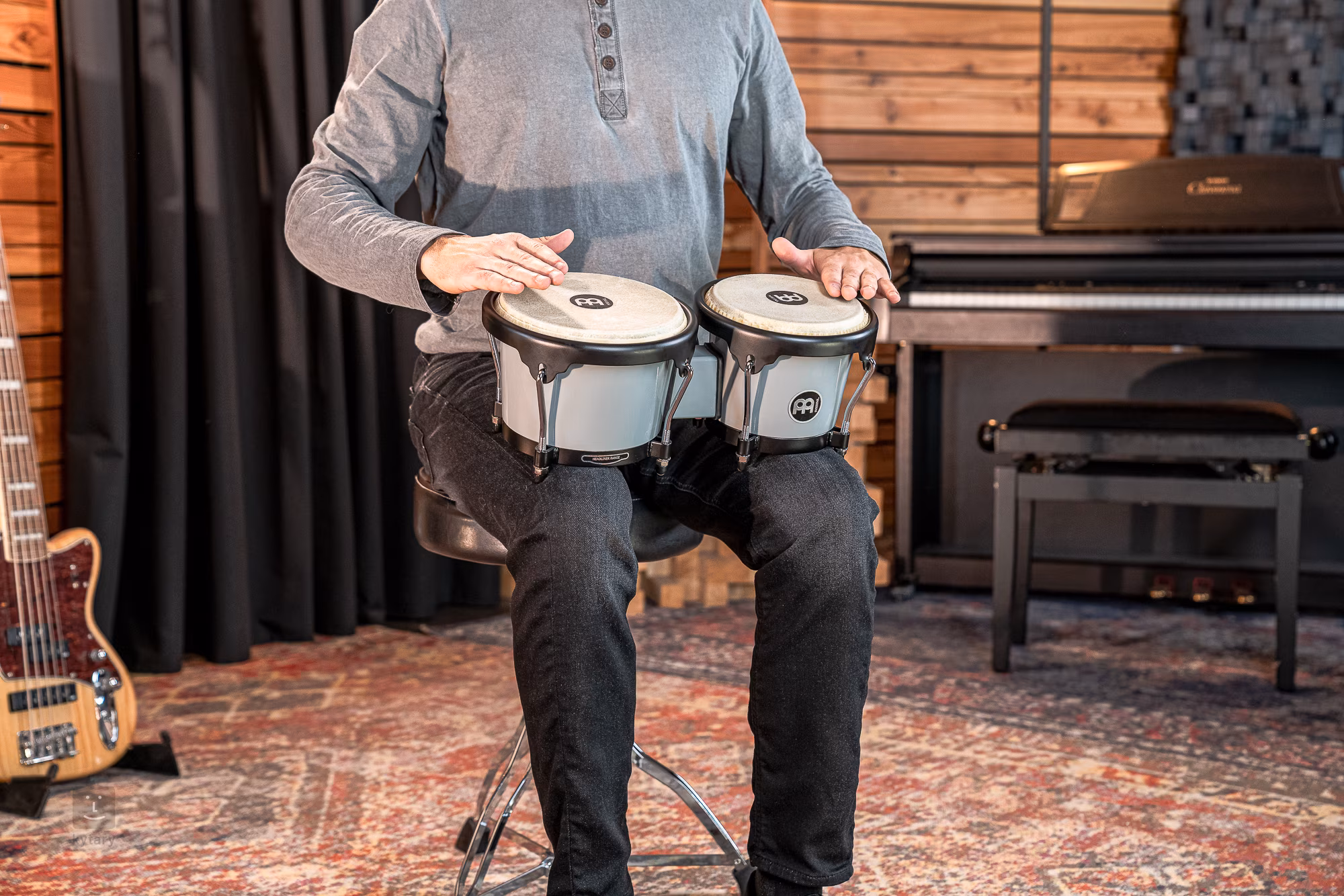 A Meinl Journey sorozatú bongói nagyszerű választás különösen azoknak, akik tartós hangszert keresnek utazáshoz, de a kezdőknek és a középhaladó játékosoknak is, akik nagyszerű ár-érték arányt keresnek. Testük hagyományos formát kínál, és környezetbarát, rendkívül tartós ABS műanyagból készül. A csúcsminőségű hangzásról ezután válogatott bivalybőrből készült fújtató gondoskodik, amely könnyen és pontosan hangolható a fekete homokfúvott felületű 8 mm-es karikáknak köszönhetően, amelyek élei szintén lekerekítettek a maximális játékkomfort érdekében. Ha tehát egy minőségi hangszert keres, amely miatt nem kell aggódnia, ha sokat van úton, akkor a legjobb helyen jár. A hangolókulcsot mellékeljük.