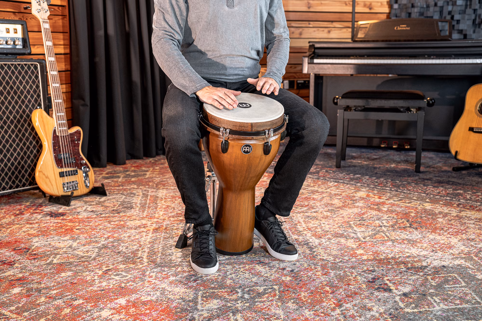 Ha egy igazán jó minőségű, erőteljes hangzású djembe-t keres, amely tartósságának és könnyű súlyának köszönhetően ideális a gyakori utazáshoz, akkor a legjobb helyen jár. Ez a Meinl Jumbo sorozatába tartozó djembe könnyű szintetikus anyagból készült, amely nemcsak nagyon tartós és teljesen időjárásálló, hanem a hangszer hangzási lehetőségeinek igen széles skáláját is biztosítja. Ezt segíti a nagyobb test is, amely a jobb rezonancia képességének köszönhetően igazán vastag basszus hangzást, de éles és koncentrált magas vagy slap hangokat is képes produkálni. A stabil és könnyű hangolást a robusztus hardver biztosítja, amely egyúttal egyenletes hangzást is biztosít.