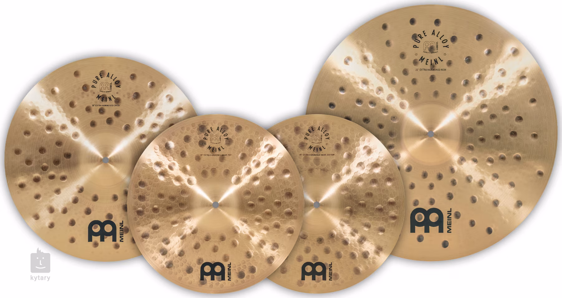 A Meinl Pure Alloy Extra Hammered sorozatból származó ez a szett egy tökéletesen összehangolt cintányér-hármas (15” hi-hat, 18” crash, 22” ride) azoknak a dobosoknak, akik egyedülálló karakterű, professzionális hangzást keresnek. Hangzásprofilja a Byzance sorozat sötét hangjai és a Classics Custom tiszta hangzása között helyezkedik el. A teljes felületen végzett kiterjedt utólagos kalapálásnak köszönhetően a cintányérok átható melegséget, komplex utóhangot és gyors lecsengést kapnak, ami rendkívül sokoldalú eszközzé teszi őket bármilyen zenei stílushoz.