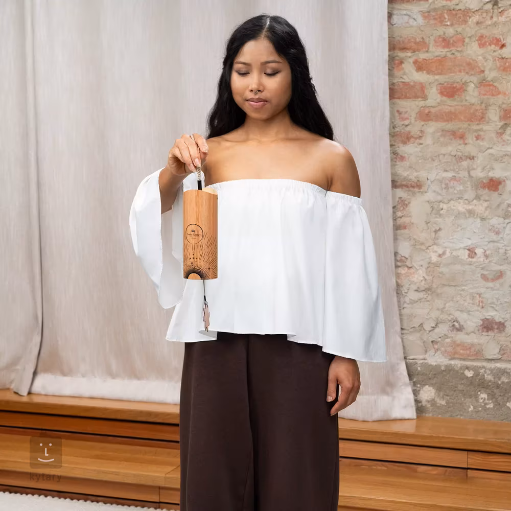 A Meinl Sonic Energy Cosmic Bamboo Chimes egy olyan hangszer, amely gyengéd rezonáló hangokat produkál, amelyek békés hangzással töltik meg a teret. Ideálisak meditációhoz, hangfürdőkhöz és jógához, vagy használhatók otthoni relaxációs tér kialakítására az elmélkedés pillanataihoz. Egyszerűen tartsa a zsinórt, és finoman rázza meg a harangjátékot a hangjuk aktiválásához. Belsejében egy inga és egy meghatározott hangokra hangolt fémhuzalok csoportja található. A hangok könnyen beállíthatók a mellékelt ingák cseréjével: akril (kemény) és fa (lágy). Az akril inga a harangjáték aljába csúszik, és a fa keresztrúdon lévő kampóra akasztódik. A harangjáték megszólaltatásához csak húzza meg a zsinórt és emelje fel. A hangok A4/a' 432 Hz; E5, F#5, A5, D6, F#6, E4, A4, D5.