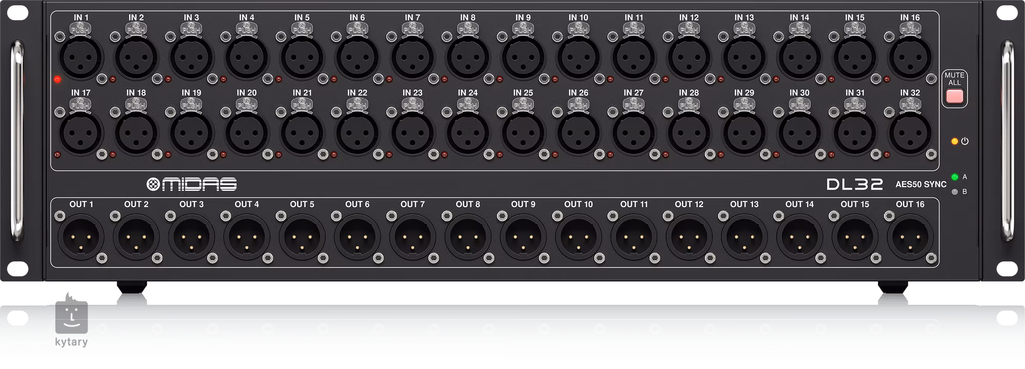 A Midas DL32 Digital Stagebox hatékony megoldás az összes színpadi berendezés digitális konzolokhoz való csatlakoztatására - 32 mikrofon-előerősítőt, 16 szimmetrikus analóg XLR-kimenetet kínál, és egyetlen Cat 5e kábel (akár 100 méteres kábelezéssel) elegendő a boldogsághoz. A digitális stagebox emellett MIDI I/O-t, USB-t a firmware frissítésekhez, AES50 hálózatot (Klark Teknik) és AES50 portokat kínál, amelyeken keresztül két Midas DL32 stagebox kaszkádolható, ha egy teljes M32 rendszerrel van összekötve, egy Ultranet portot a Turbosound iQ sorozatú hangszóróihoz és egy Behringer Powerplay P-16 monitorozó rendszerhez való közvetlen csatlakozáshoz, valamint ADAT és AES/EBU optikai kimeneteket.