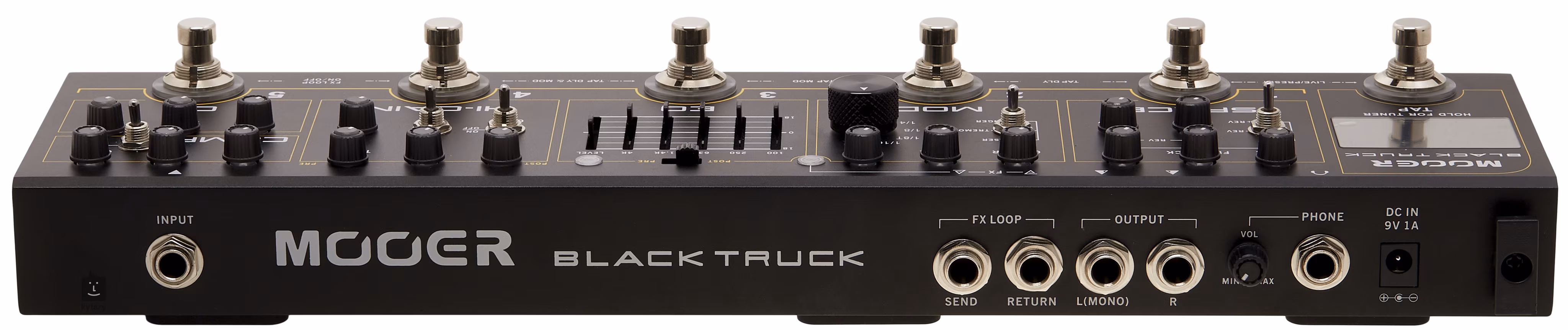 A kínai Mooer márka Black Truck hi-gain multi-effektje praktikus megoldás azoknak a rock- és metálgitárosoknak, akik nem akarnak többé egy csomó gitárpedált cipelni magukkal. Követi az előző, Red Truck nevű multieffektet, és koncepciójában nem sokban különbözik - ebben az esetben azonban különösen a magas erősítésű torzítást használó játékosok találnak benne kedvükre valót. Egy kompresszorral is kiegészült, és az equalizációs lehetőségek is bővültek.