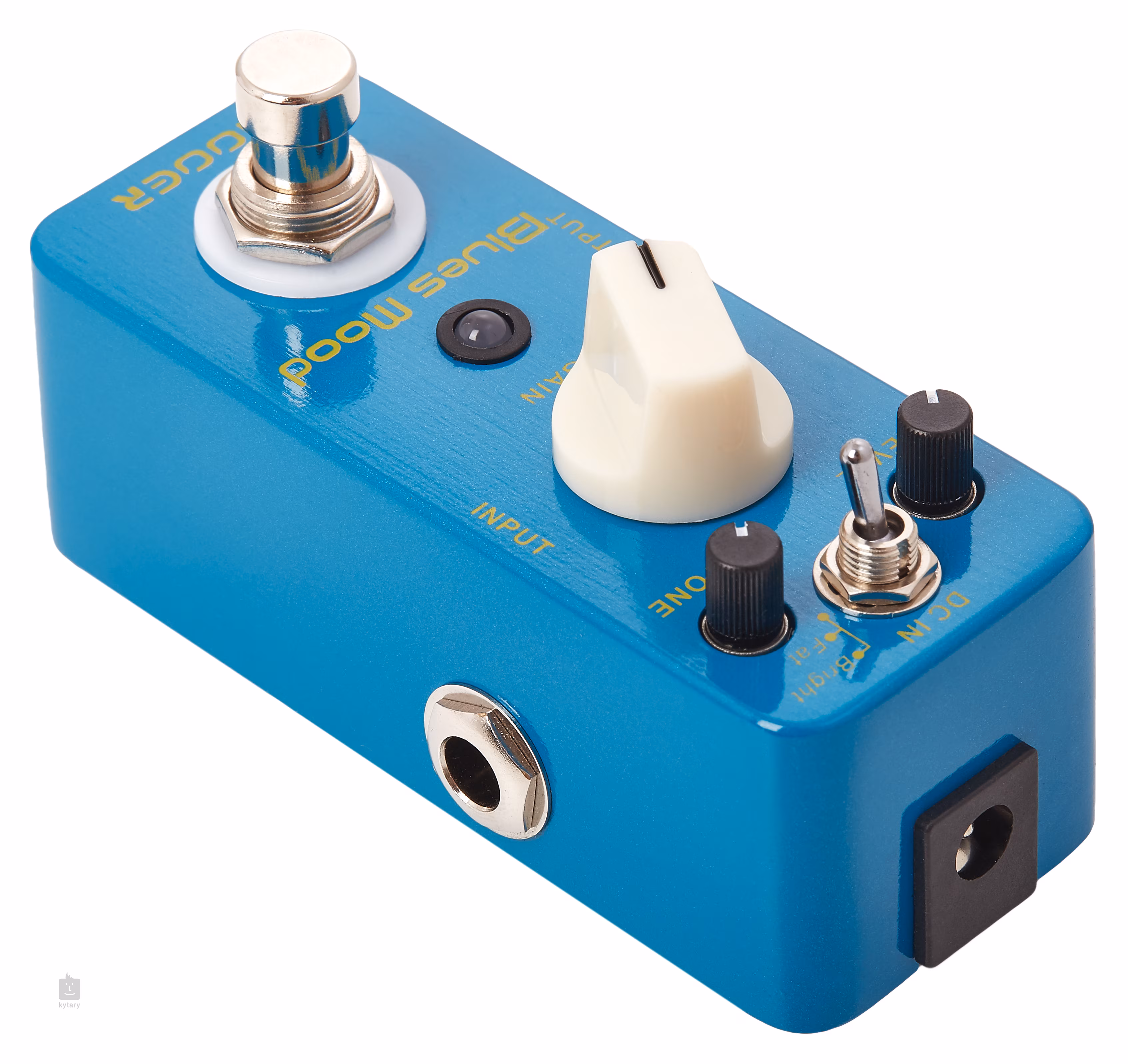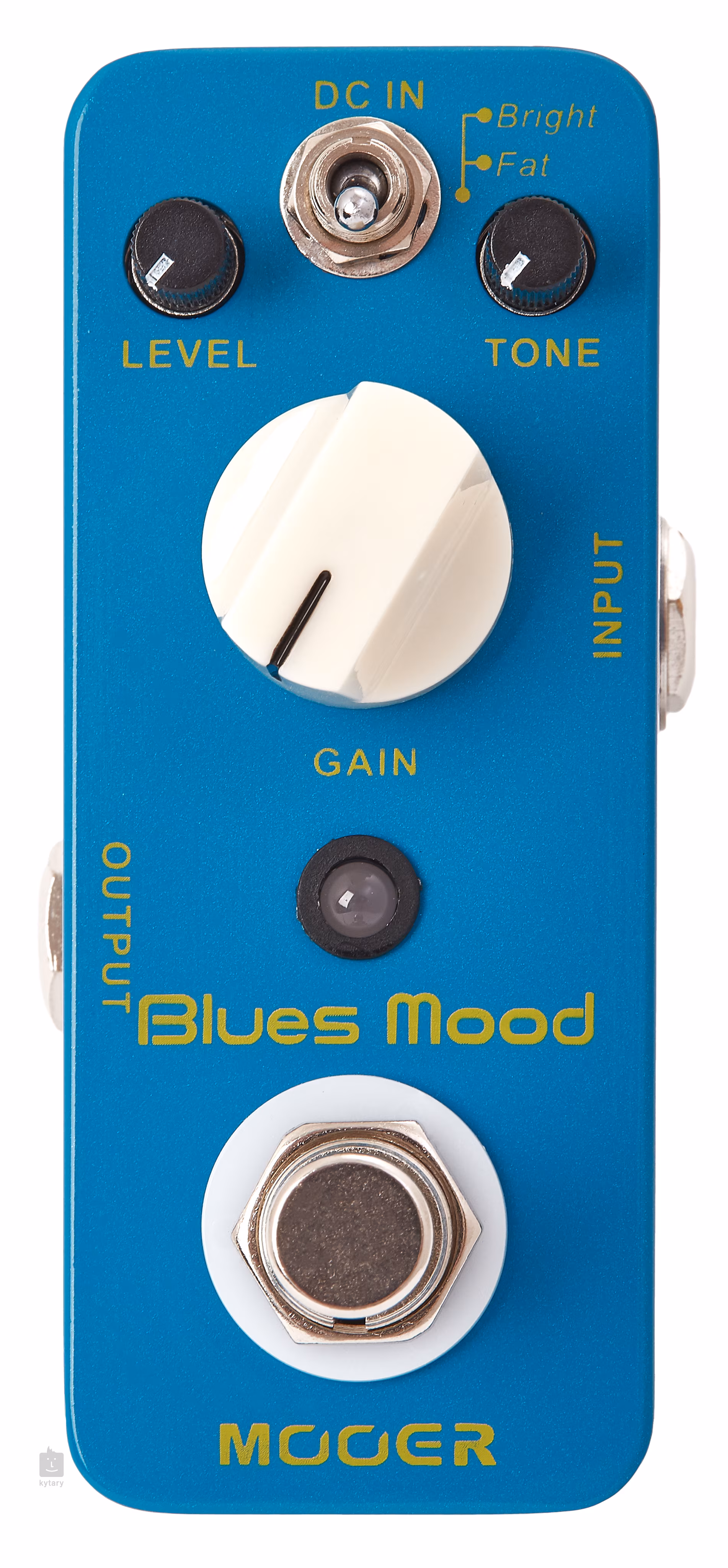 A Blues Mood egy kompakt gitár overdrive pedál a kínai Mooer márka Micro sorozatából. Ez egy hagyományos blues overdrive, egyszerű kezelőszervekkel és két hangzási móddal (bright/fat), amely különösen a blues/rock és a rokon stílusokat kedvelő játékosoknak fog tetszeni. Gyönyörűen színesíti és megfelelő csillogást kölcsönöz a gitárhangnak, akár kíséretnél, akár szólóban. Más pedál effektekkel ellentétben jól szól basszusgitárral is.