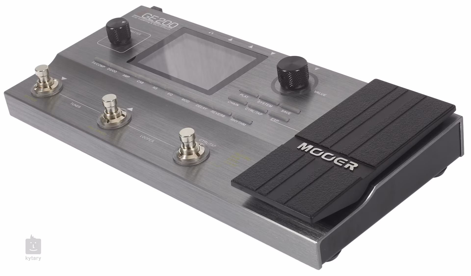 A MOOER GE200 egy gitár multieffekt integrált expressziós pedállal, amely erősítő modellező technológiával rendelkezik. Összesen 151 kiváló minőségű gitáreffektet kínál, köztük kompresszor, overdrive, noise gate, EQ, moduláció, szűrő, delay és reverb. Emellett 55 kiváló minőségű gitárszimulációt is talál, amelyekhez könnyen hozzáférhet egy intuitív, digitális kijelzővel ellátott felhasználói felületen keresztül. A vezérlést az egyes effektek beállítására szolgáló gombok sora is megkönnyíti. A ritmusszekció beépített metronómot biztosít 10 választható üzemmóddal és 40 ritmikus ütőhangszeres mintával. A készülék akár 200 felhasználói előbeállítás létrehozását és tárolását is lehetővé teszi.