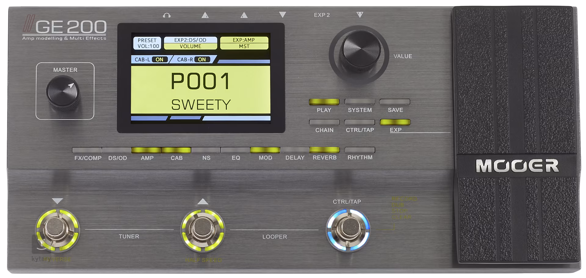 3x FS, Master, Value, 9x Effects, Rhythm, Chain, Ctrl/Tap, Exp, Play, Systém, Save