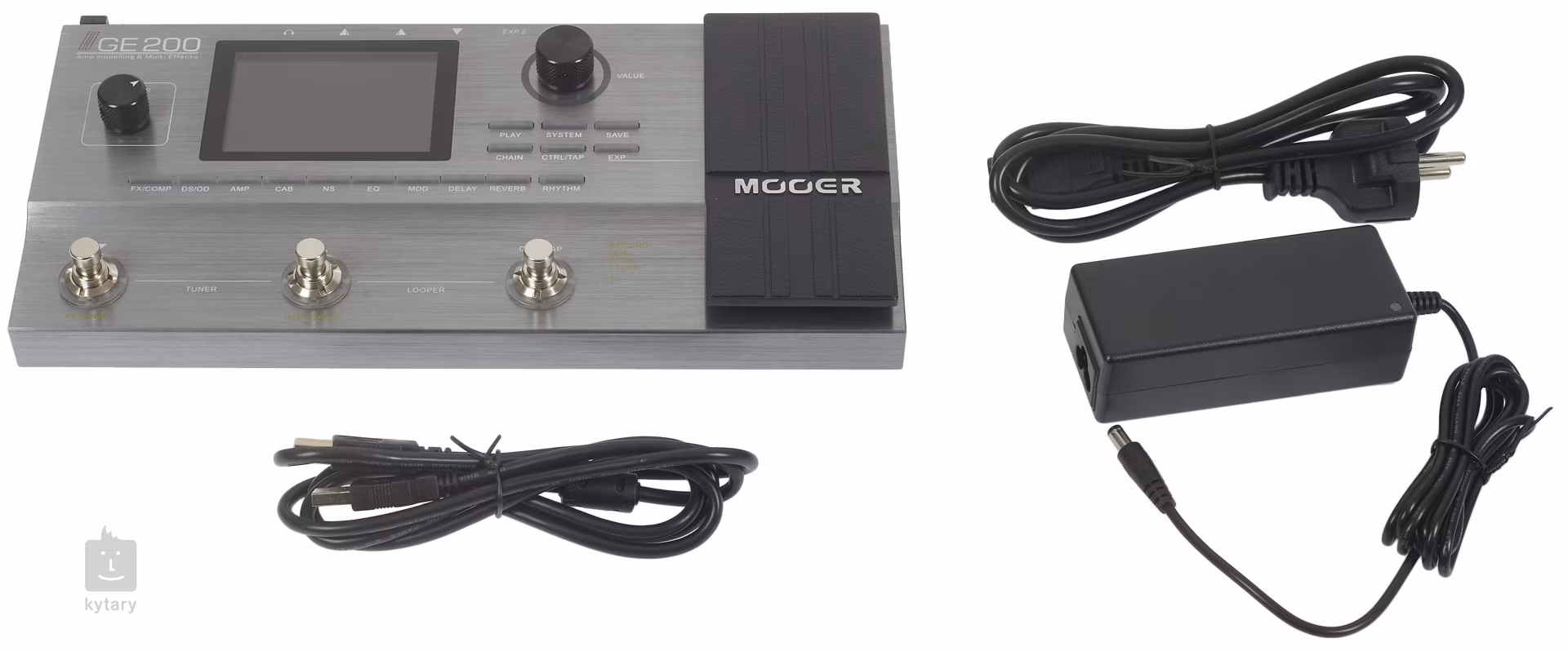 A MOOER GE200 egy gitár multieffekt integrált expressziós pedállal, amely erősítő modellező technológiával rendelkezik. Összesen 151 kiváló minőségű gitáreffektet kínál, köztük kompresszor, overdrive, noise gate, EQ, moduláció, szűrő, delay és reverb. Emellett 55 kiváló minőségű gitárszimulációt is talál, amelyekhez könnyen hozzáférhet egy intuitív, digitális kijelzővel ellátott felhasználói felületen keresztül. A vezérlést az egyes effektek beállítására szolgáló gombok sora is megkönnyíti. A ritmusszekció beépített metronómot biztosít 10 választható üzemmóddal és 40 ritmikus ütőhangszeres mintával. A készülék akár 200 felhasználói előbeállítás létrehozását és tárolását is lehetővé teszi.