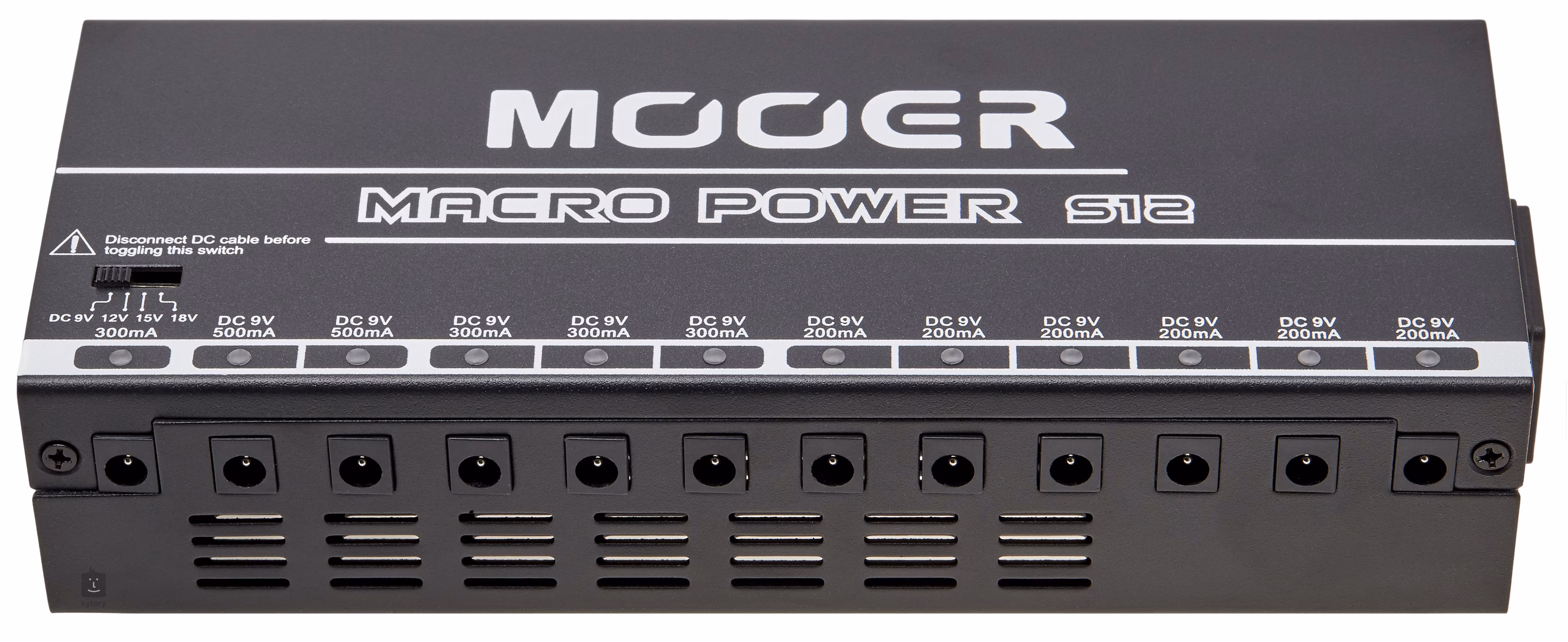 A Macro Power S12 egy kompakt multiadapter, amellyel egyszerre akár tizenkét effektet is táplálhat. Összesen tizenkét LED-jelzésű kimenetet kínál, köztük egy állítható feszültségű (9/12/15/18 V) és 300 mA maximális felvétellel, valamint tizenegy szabványos 9 V-os kimenetet - hat 200 mA-es, három 300 mA-es és két 500 mA-es kimenetet. A hálózati feszültségkapcsoló (110-120 V és 220-240 V) lehetővé teszi a multiadapter világméretű használatát.
