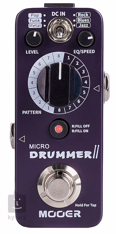 A Mooer Micro Drummer II egy ultrakompakt automata dobgép a Micro sorozatból, amely ideális eszköz minden olyan zenész számára, akinek otthon vagy a próbateremben kell gyakorolnia, és nincs megfelelő ritmuskíséret. Nyolc különböző ritmusmintát kínál hat zenei műfajban (Pop, Funk, Metal, Rock, Blues, Jazz), összesen 48 különböző ütemet. A dobgép hangereje, sebessége és hangkaraktere (színe) a főpanelen található szabályzóval állítható. A kíséret tempója a lábkapcsolóval is változtatható (tap tempo funkció). A lábkapcsolón keresztül vezérelheti a Fill funkciót is, ahol a ritmikus mintát átmenetekkel (drum fills) variálhatja, vagy a lábkapcsoló kétszeri megnyomásával befejezheti a dobmintát.