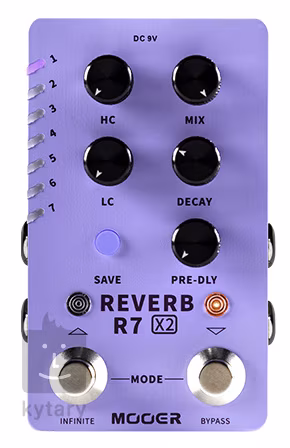 A Mooer R7 X2 Reverb egy sztereó reverb, amely a Mooer A7 Ambiance és az R7 Reverb pedál effektek legjobb digitális effektjeit egy vázba csomagolja. A tizennégy effekt között olyan klasszikusok találhatók, mint a Room, Hall, Church, Cave, Plate, Spring, Studio, valamint modern ambient algoritmusok: Mod, Reverse, Wrap, Shake, Crush, Shimmer, Dream.