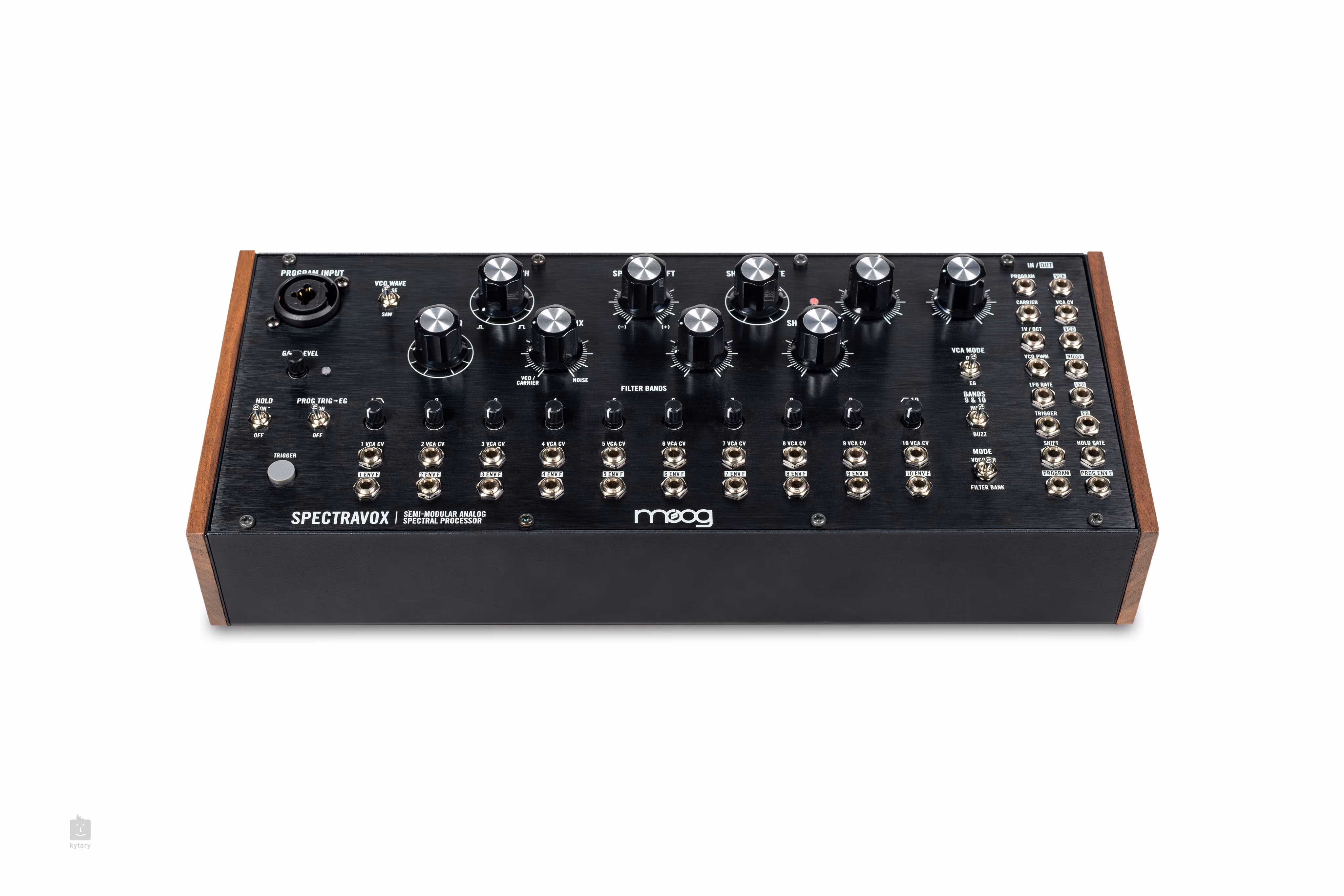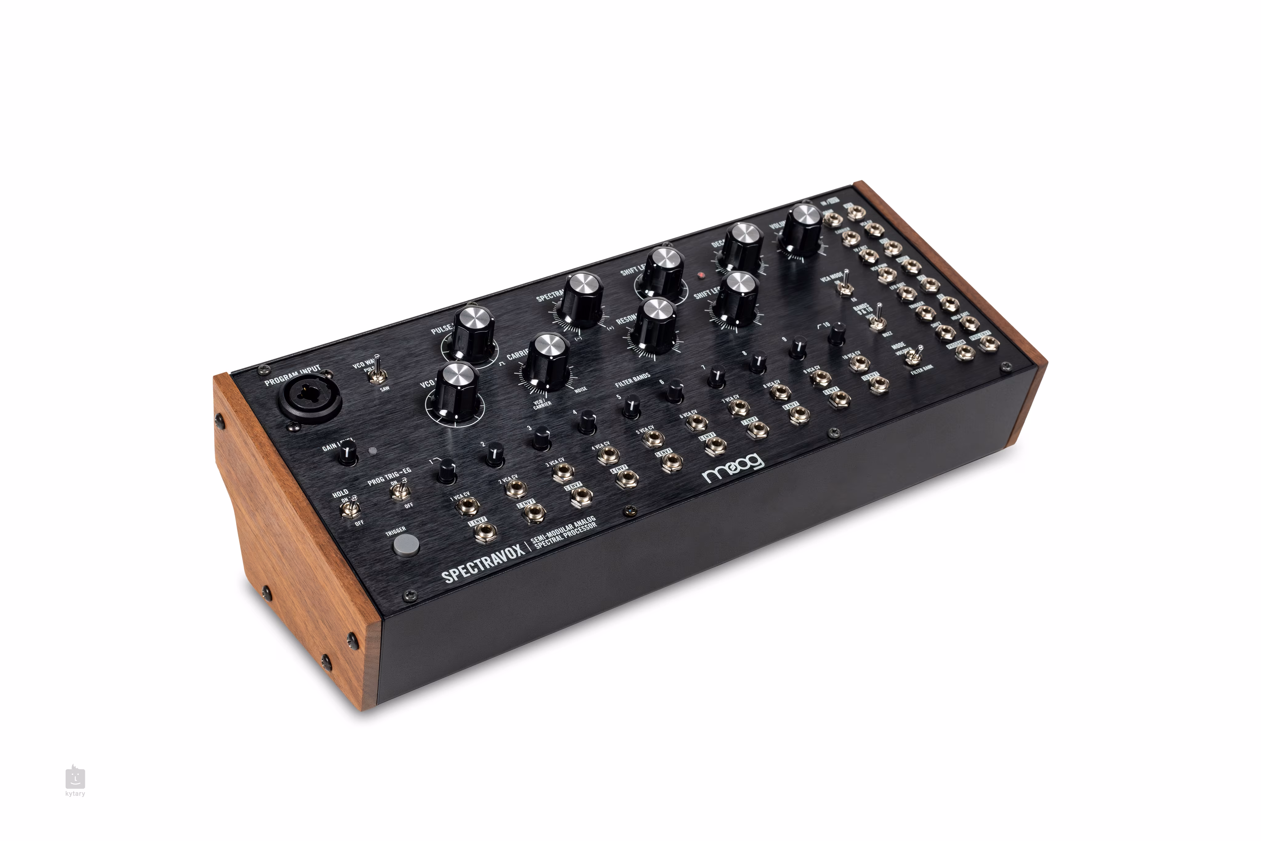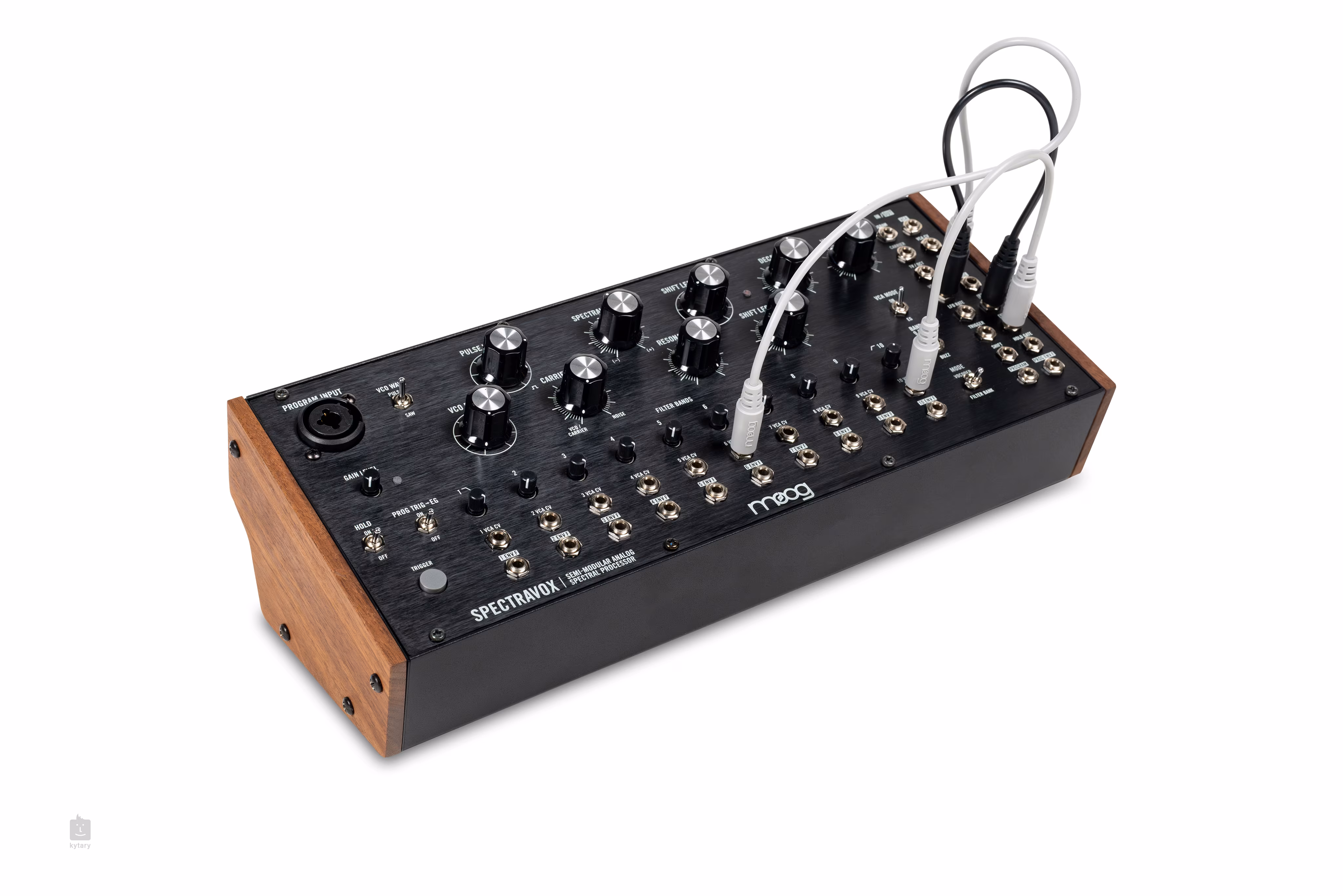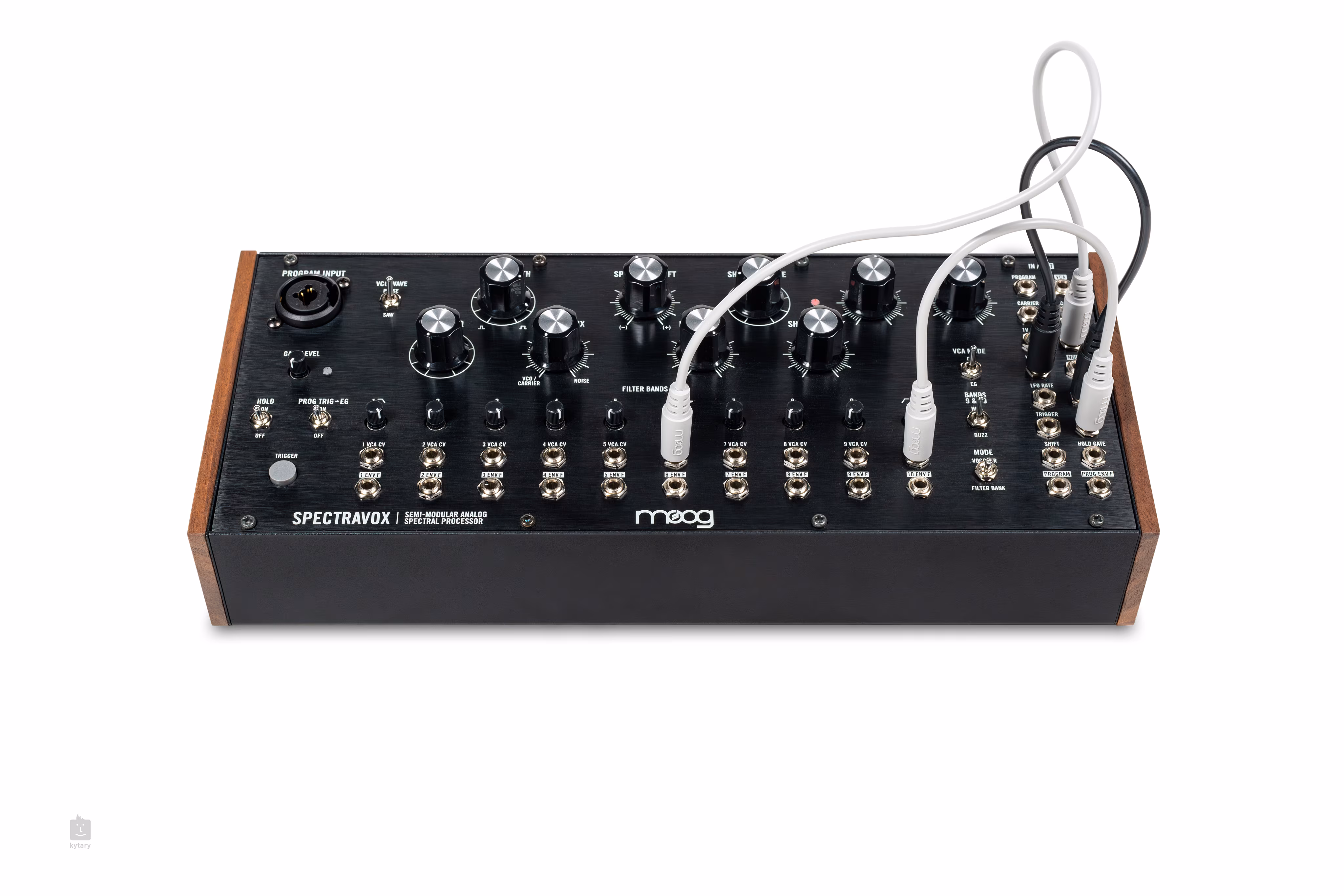 A Moog Spectravox egy áttörést jelentő szintetizátor, amely a Moog félig moduláris szintetizátorok családjának legújabb tagja, és egyben a limitált kiadású Moogfest továbbfejlesztett változata. Ez az egyedülálló hangszer egy analóg spektrális processzort használ 10 sávos szűrőbankkal, amely lehetővé teszi az élénk drone hangok és színes hangszínkeverékek létrehozását. A Spectravox képes rezonáns mélységet és pszichedelikus spektrális mozgásokat adni bármilyen külső hangnak, ha pedig mikrofont csatlakoztatsz hozzá, akkor egy 10 sávos analóg vokódert kapsz, modulációs és illesztési lehetőségekkel együtt.