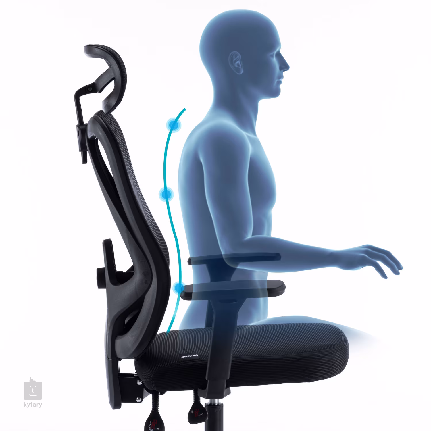 Ergonomikus forma a maximális kényelemért: úgy tervezték, hogy támogassa a gerinc természetes görbületét és biztosítsa a helyes testtartást, csökkentve a fáradtságot és a hátfájást még hosszú ideig tartó ülés közben is.
