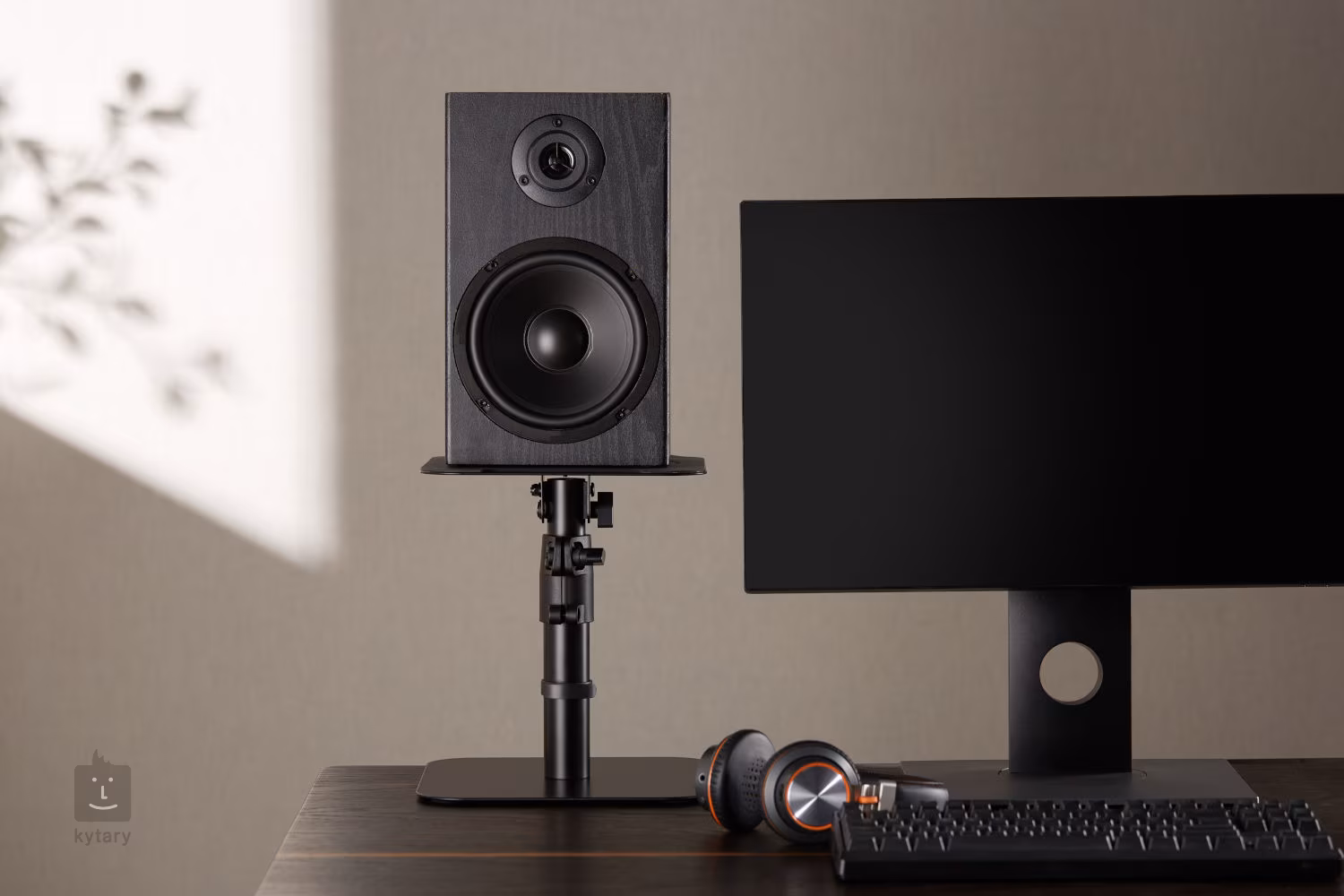A hangszórók megfelelő beállítása az egyik legfontosabb paraméter a hallgatói tér kialakításakor a stúdióban, de otthon is. A közvetlenül az íróasztalra történő elhelyezés nem kívánt rezonanciákat okoz, amelyektől nehéz megszabadulni. Egyszerűen helyezze az MSK6 állványokat az asztalra, és csak finomhangolja a magassági vagy dőlésbeállítási beállításokat.