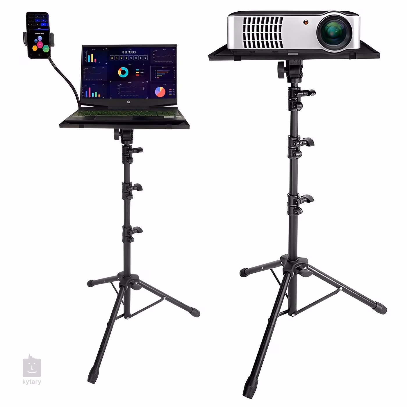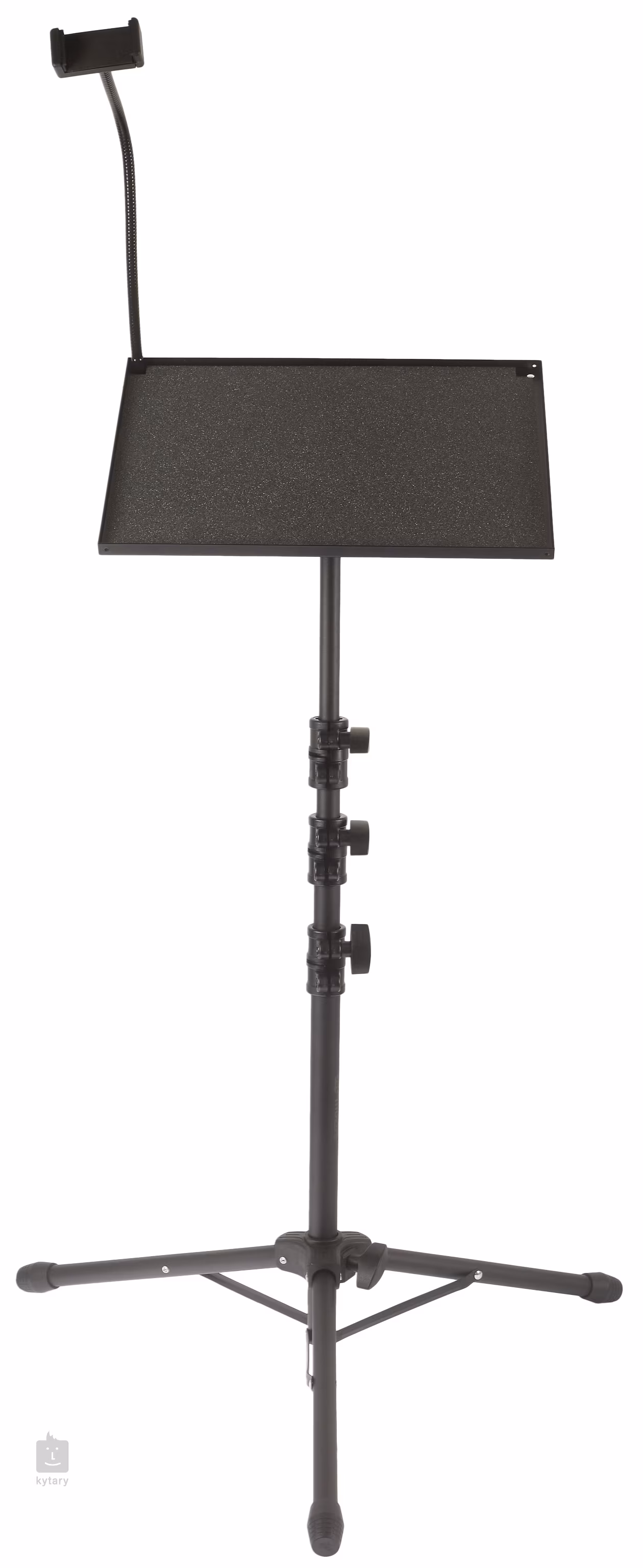 Univerzális állvány laptop, táblagép, projektor, könyvek vagy jegyzetek számára 285 x 385 mm-es pultmérettel, állítható pultdőléssel és állítható magassággal 570 mm - 1600 mm között.