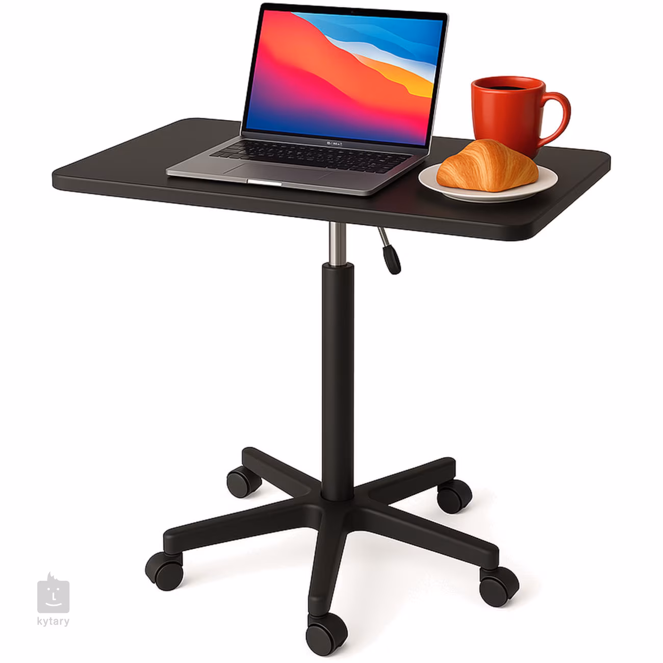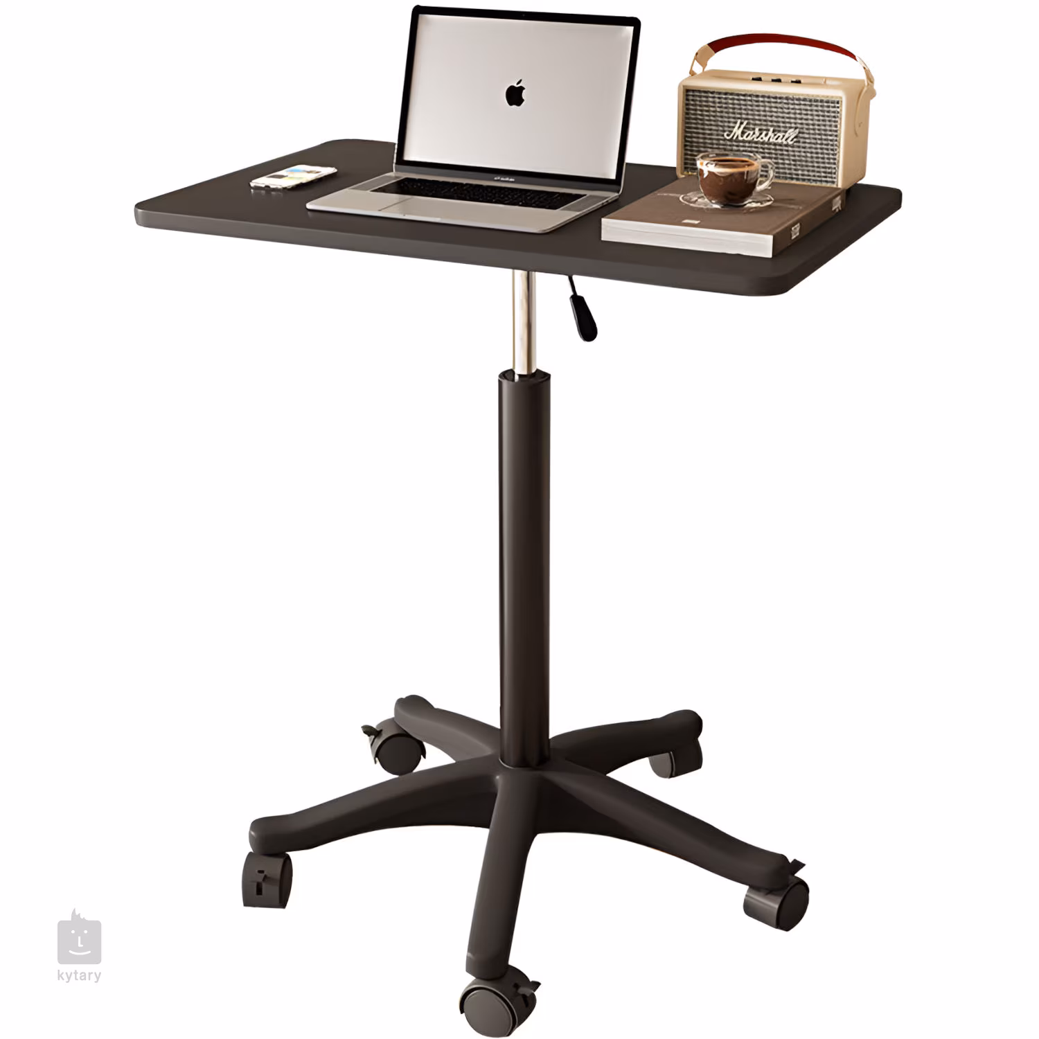 Az asztal kiváló minőségű acélszerkezetből és tartós MDF-anyagból készült, ami garantálja a stabilitást és a tartósságot. A négy görgőnek köszönhetően könnyen mozgatható egyik helyről a másikra, amit otthon és az irodában is értékelni fog. Az elegáns kivitelű kivitel illik a modern enteriőrökhöz, és hangsúlyozza sokoldalú felhasználhatóságát.